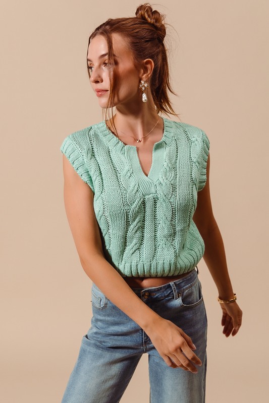 The Notched Neck Cable Knit Sweater Vest is a classic and stylish addition to your wardrobe. Featuring a cable knit design and a notched neckline, this sweater vest offers a timeless and sophisticated look. Perfect for layering over shirts or blouses, it adds warmth and texture to your outfit. Pair it with jeans or trousers for a polished and put-together ensemble.