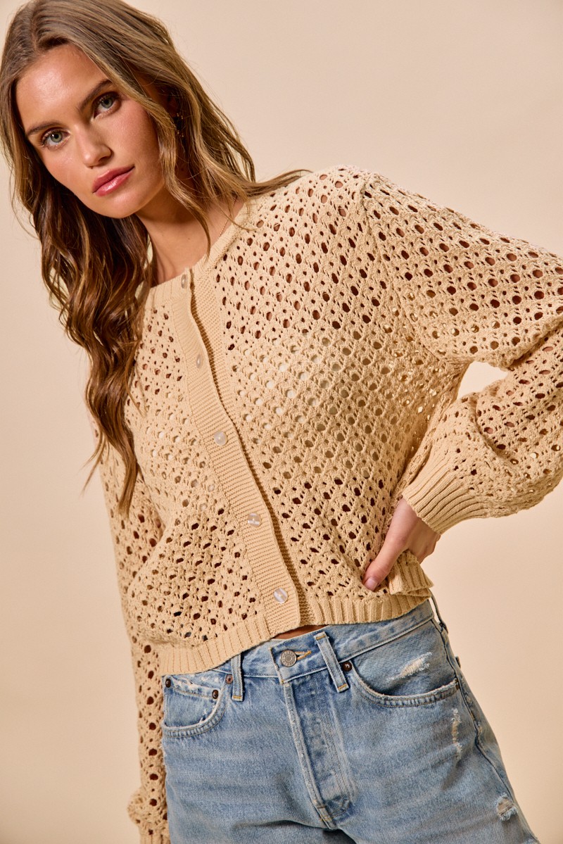 This Open Knitted Button Down Cardigan Sweater Top features an open knit design with a button-front closure, offering a soft, lightweight feel and relaxed fit. Ideal for layering, it combines cozy comfort with timeless casual style for versatile everyday wear.
