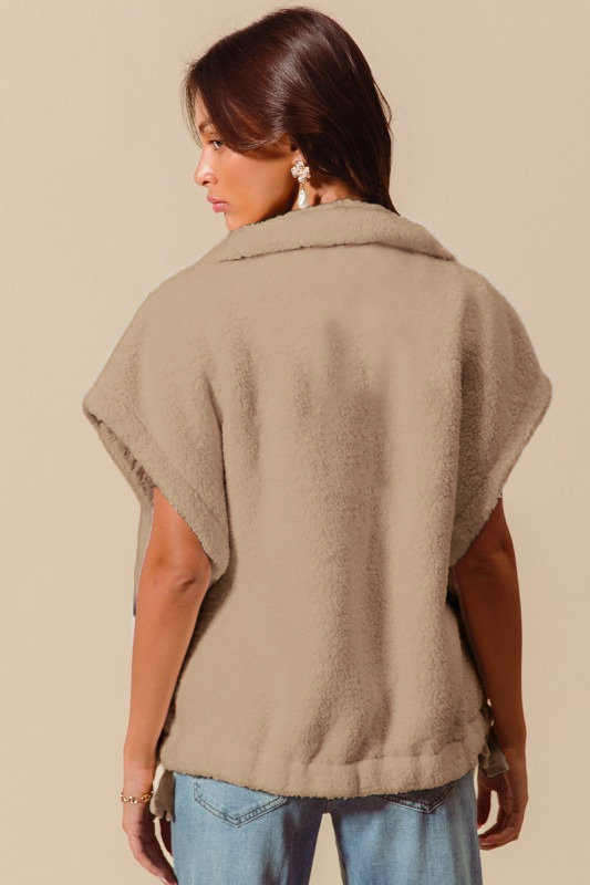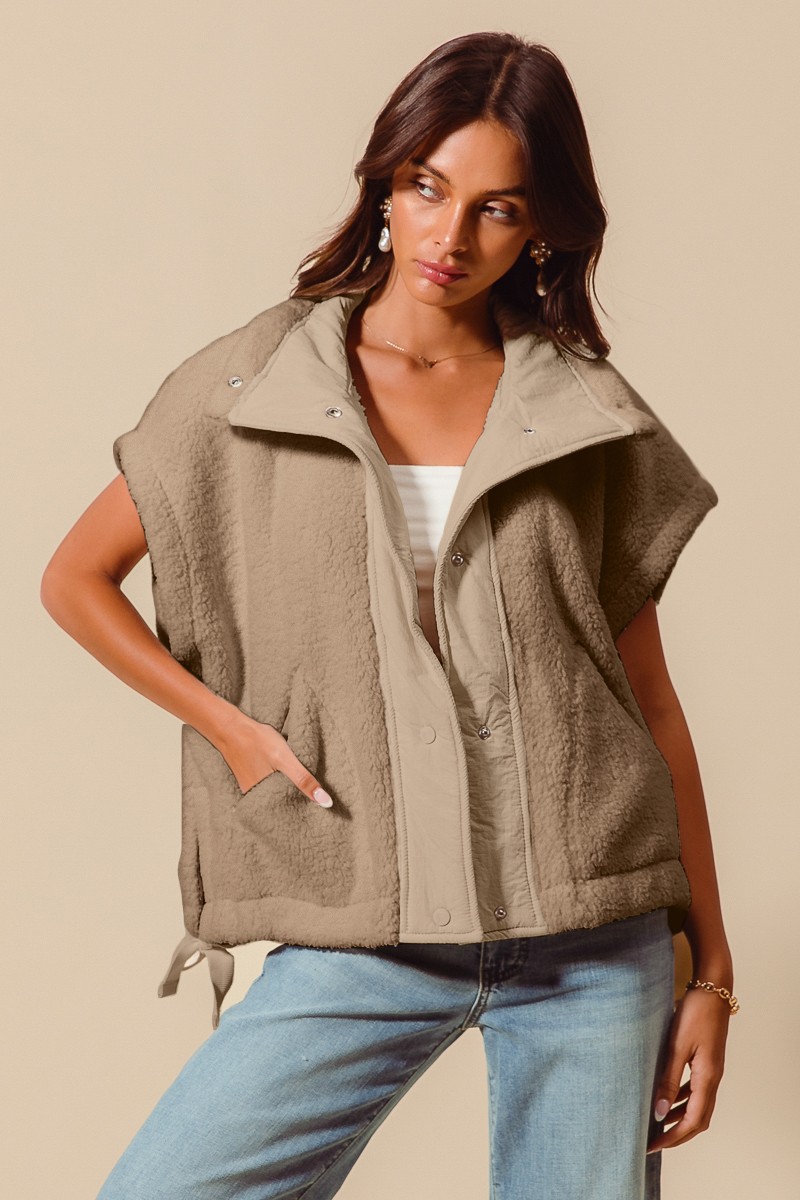 Stay warm and stylish in this Oversized Soft Sherpa Fur Sleeveless Vest Jacket. The sherpa fur material adds a luxurious and cozy feel to this vest jacket, perfect for layering up in colder weather. The sleeveless design gives you freedom of movement while still keeping you warm. The oversized fit lends a trendy and relaxed vibe to your outfit. Pair it with long-sleeve tops or sweaters for a fashionable and cozy look that will keep you comfortable all day long.