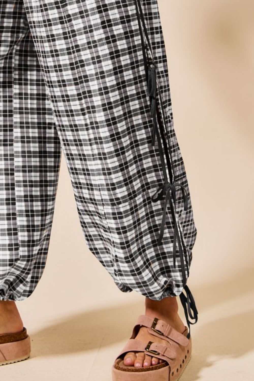These stylish balloon pants feature a timeless black and white plaid pattern that adds a classic touch to any casual outfit. Made with comfortable elastic waistband and adjustable drawstring hems, they offer both style and functionality. The loose, balloon silhouette provides maximum comfort while maintaining a fashion oversized aesthetic. Perfect for casual outings, loungewear, or street style fashion. The breathable fabric ensures all-day comfort while the elastic waist accommodates various body types.