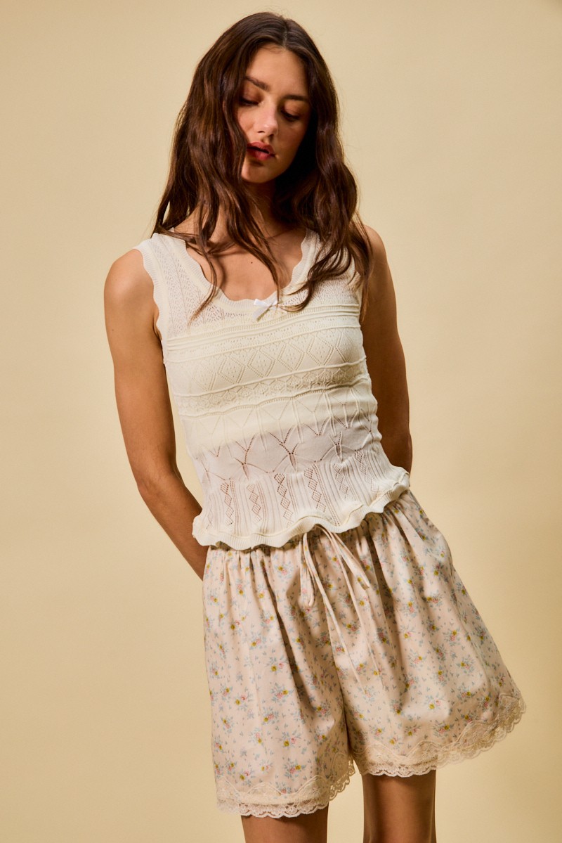 The scallop ribbed sleeveless knit top is a chic and sophisticated addition to your wardrobe. The scallop detailing along the edges adds a feminine and elegant touch to the top. Made from a ribbed knit fabric, it offers a flattering and comfortable fit that hugs your curves in all the right places. The sleeveless design makes it versatile for layering or wearing on its own in warmer weather. Whether paired with a skirt for a dressier look or with jeans for a casual vibe, this knit top is a versatile and stylish option for any occasion. Elevate your outfit with the timeless charm of this scallop ribbed sleeveless knit top.