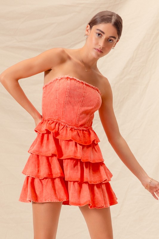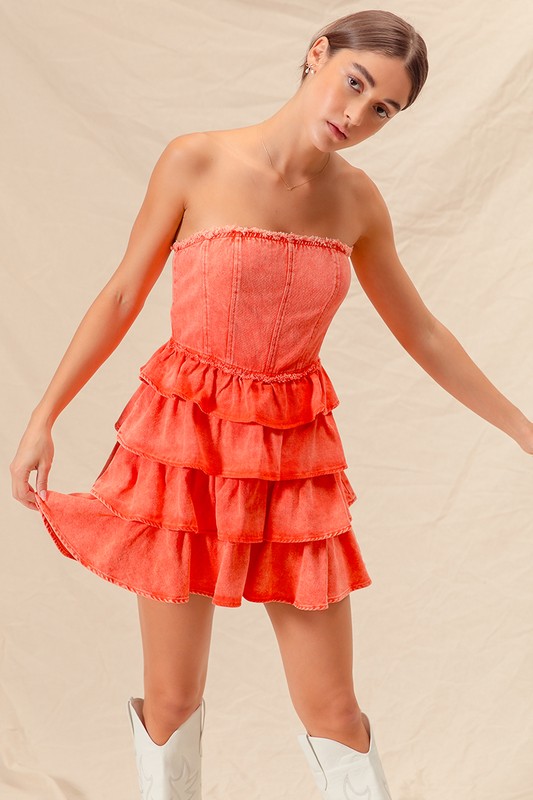 SO ME Strapless Ruffle Layered Game Day Cheer Up Dress