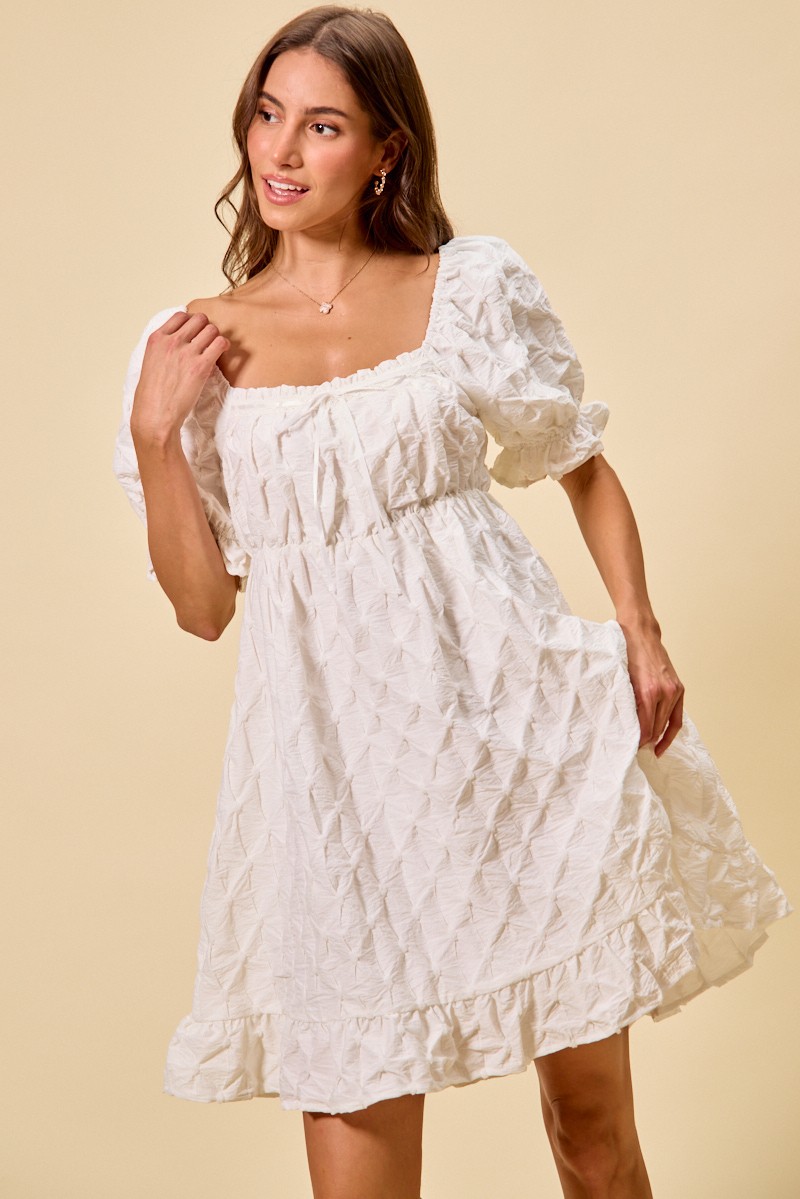SO ME Texture Woven Ruching On Bust Mini Dress