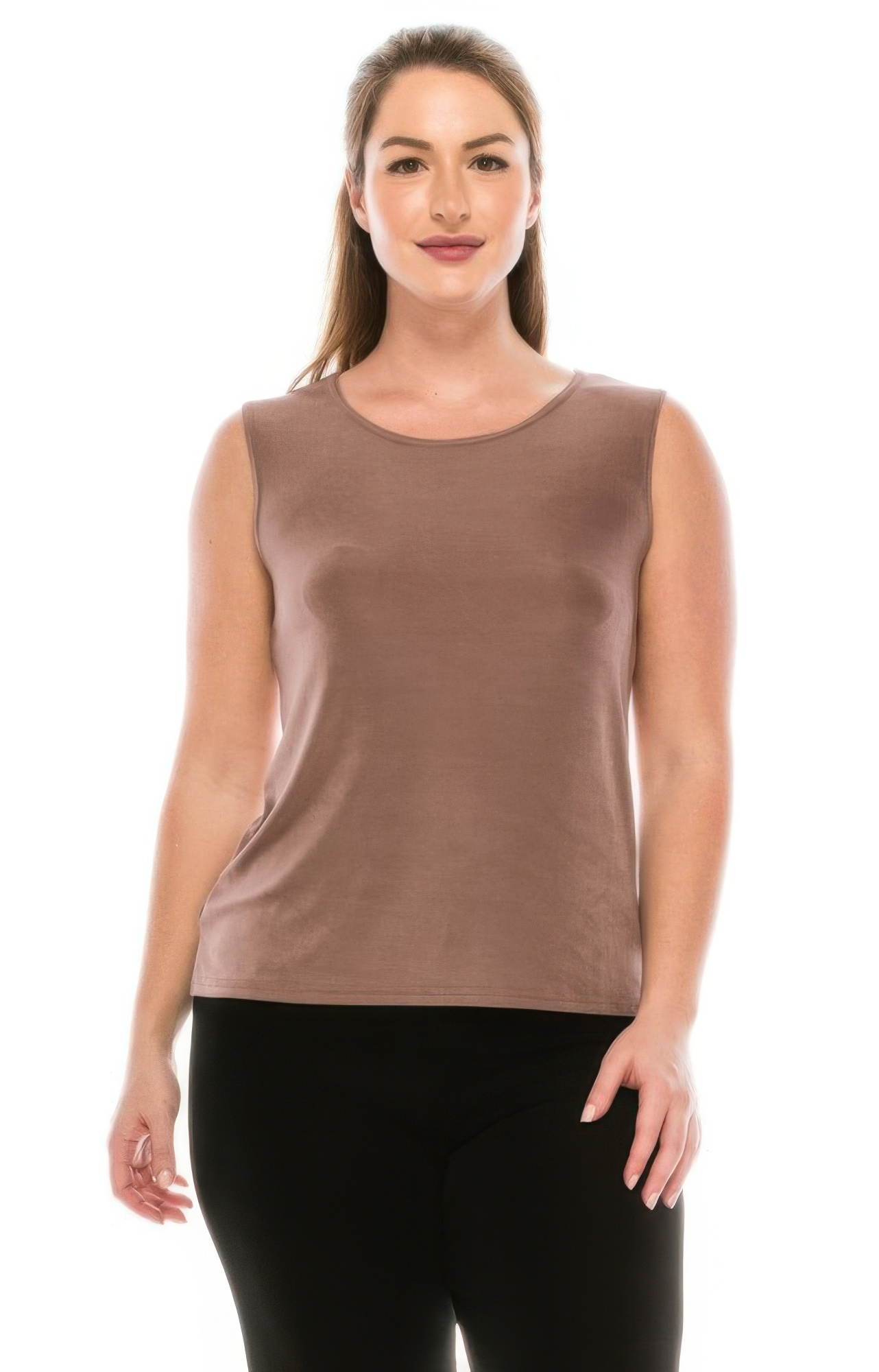 This solid sleeveless acetate tank top brings minimalist design and effortless elegance to your wardrobe. Featuring a soft round neckline and subtle side vents at the hem, it provides a graceful drape that flatters the body. The acetate fabric delivers a smooth, silky finish with just the right amount of stretch for ease of movement. Measuring approximately 24 inches from shoulder to hem (in size M), it’s ideal for wearing tucked or untucked. The sleeveless cut makes it perfect for layering under jackets or cardigans, yet polished enough to wear on its own. Whether you're dressing for the office or a casual weekend, this top adapts to your style needs. Made in the USA, it’s a timeless piece that prioritizes comfort and clean design.