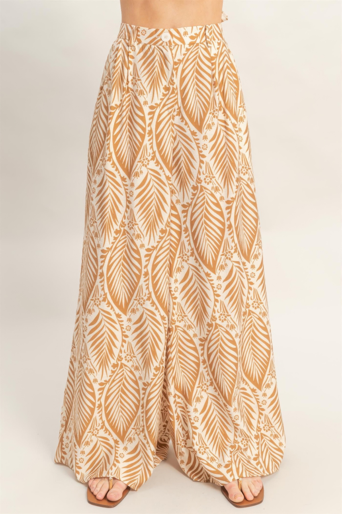 This strapless printed two-piece set delivers a polished yet relaxed look perfect for warm-weather styling. The pleated strapless top features a flattering structure and a tie-back closure that allows for an adjustable fit. Designed with a vibrant print, the set brings a lively touch to your seasonal wardrobe. The coordinating pants feature a comfortable elastic waistband and secure front zipper with button closure for a tailored feel. Practical pockets add both convenience and modern detail. Pair this set with flat sandals and a straw hat for an effortlessly stylish vacation-ready outfit.