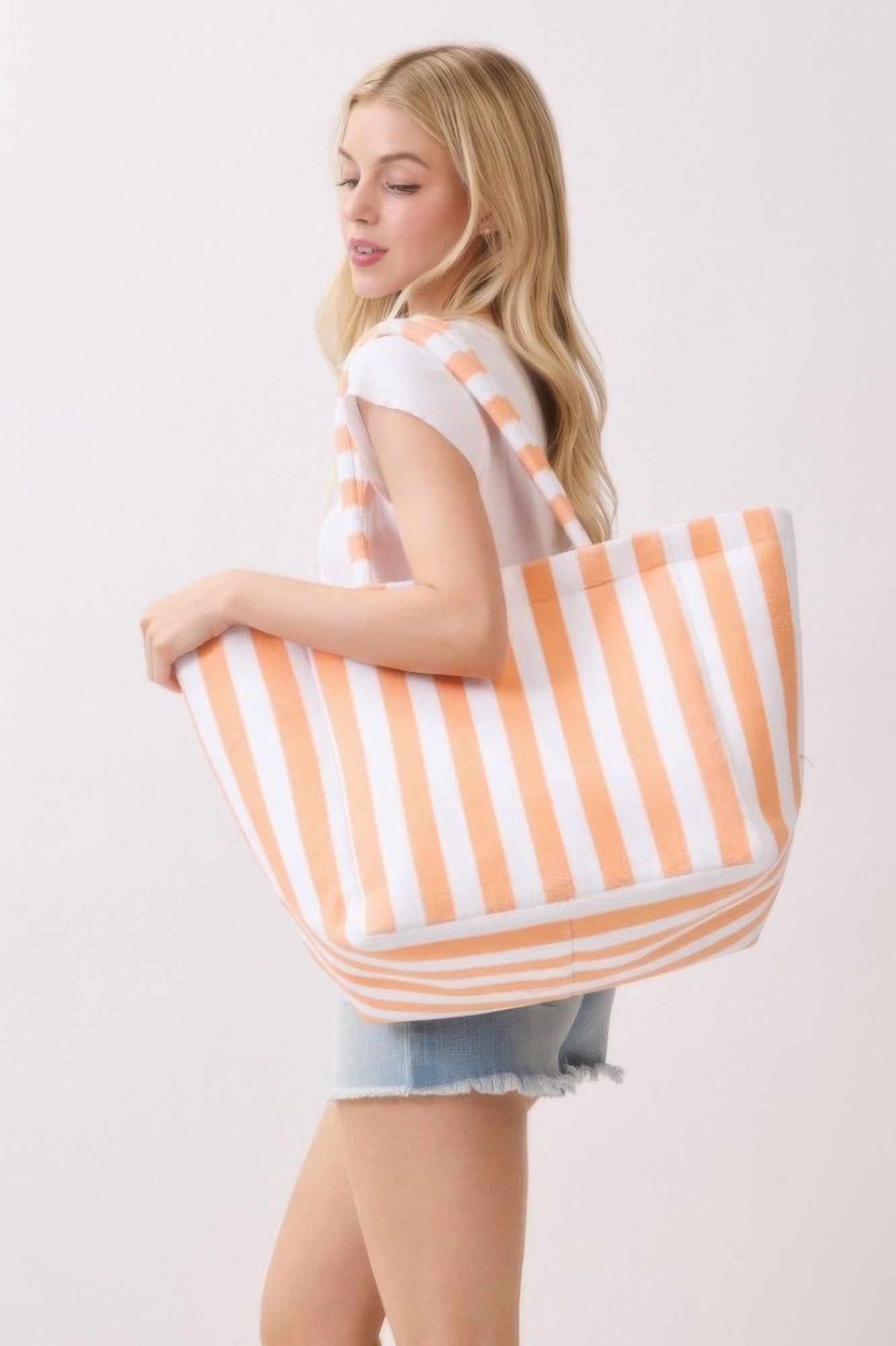 Bright, bold, and effortlessly stylish, the Striped Terry Tote Bag is your go-to carryall for casual outings. Featuring a vibrant vertical stripe pattern and a soft, textured terry fabric, this tote combines playful design with practical functionality. The roomy interior easily fits your everyday essentials—from a light jacket to your water bottle—making it ideal for weekend markets, coffee runs, or daily errands. The matching striped handle adds a cohesive finish while enhancing its visual appeal. It’s a cheerful, durable piece that’s as fun as it is functional.