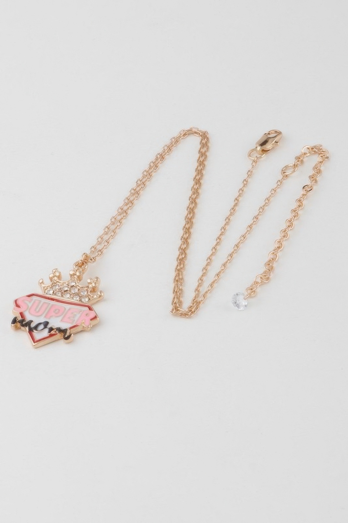 The Super Mom Diamond Crown Necklace celebrates motherhood with a sparkling and meaningful design. Featuring a crown-inspired pendant adorned with shimmering stone accents, this necklace symbolizes strength, love, and appreciation. The elegant chain allows the pendant to rest beautifully along the neckline for a polished look. Its refined sparkle makes it suitable for both everyday wear and special moments. Lightweight and comfortable, it adds a heartfelt touch to any jewelry collection. This necklace makes a thoughtful gift for honoring the amazing mothers in your life.