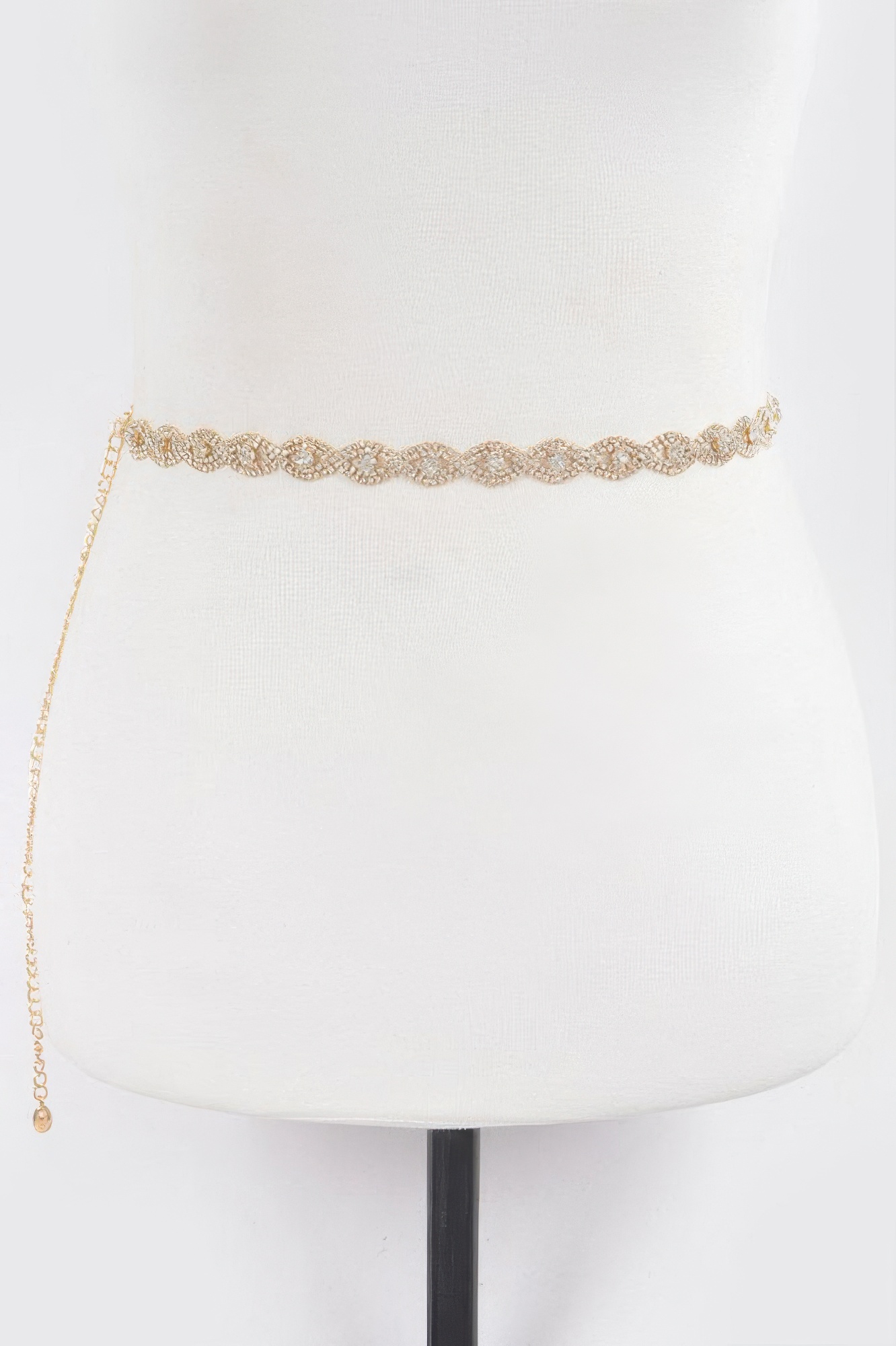 Curtain-style belt with cascading rhinestone strands