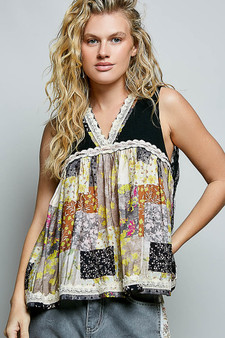 Choose Options POL Floral V-Neck Sheer Tank with Lace Trim MSRP: Was: Now: $67.73 This deep V-neck sleeveless top is designed in a regular fit using printed woven fabric for a lightw…
