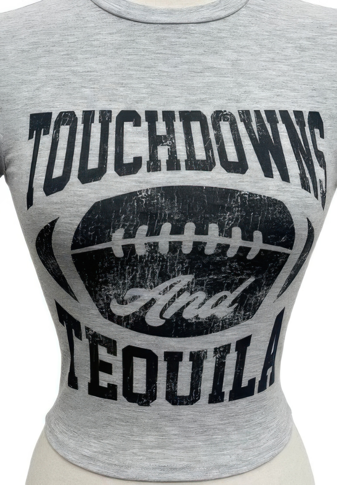 The Touchdowns & Tequila Graphic Crop Tee brings playful attitude and sporty energy to your casual lineup. Featuring a bold screen-printed graphic, this design makes a confident statement with a lighthearted edge. The cropped length creates a modern, flattering silhouette that pairs perfectly with high-rise denim or shorts. Crafted from a soft cotton blend with added stretch, it offers breathable comfort and flexible movement throughout the day. A classic round neckline and short sleeves keep the look timeless and easy to style. Designed for game days, weekends, and everything in between, this tee delivers effortless standout appeal.