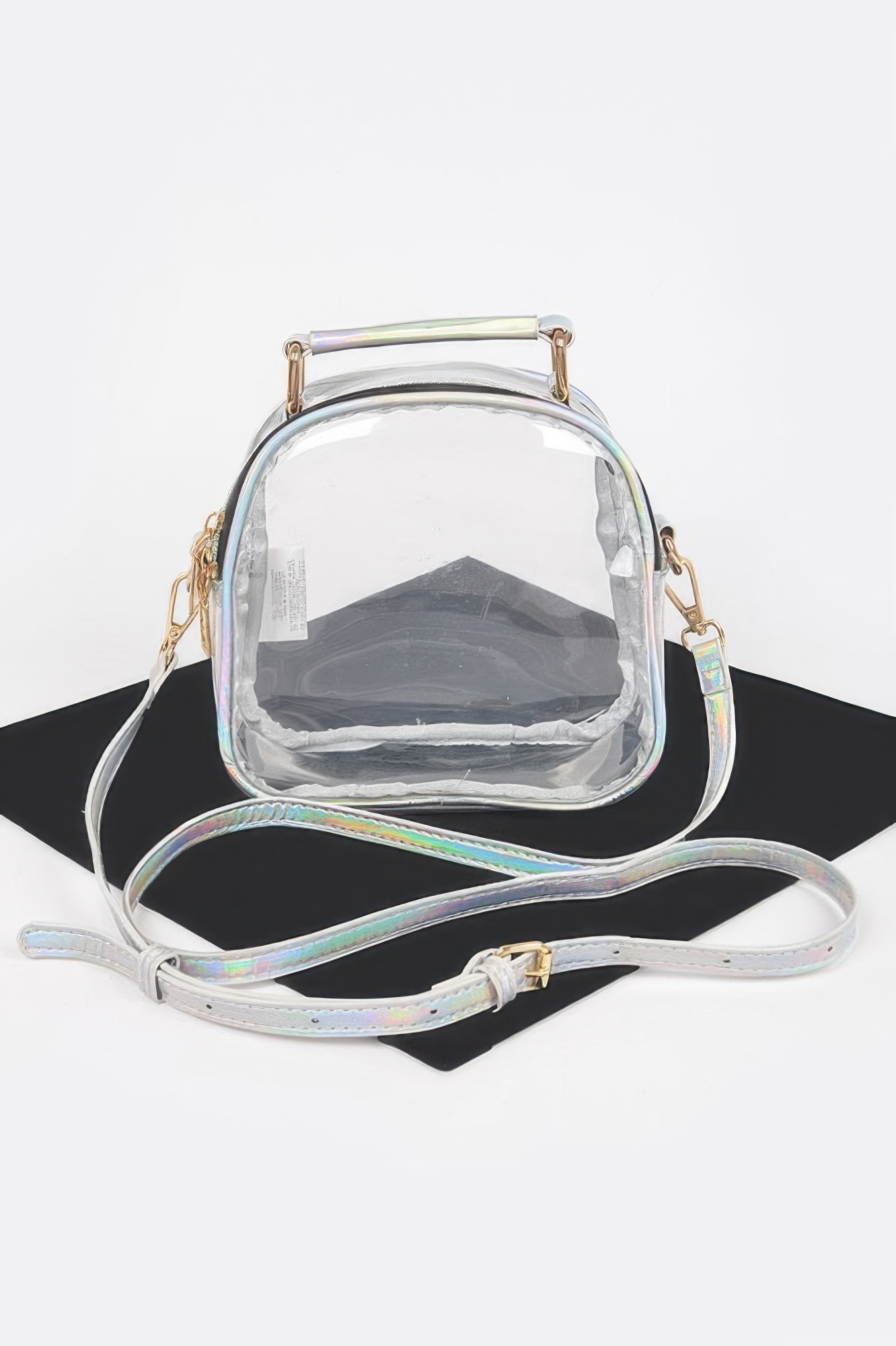 This transparent crossbody bag features a clear structured design that offers a modern and minimal aesthetic. The compact shape keeps essentials visible and organized, while the clean finish adds a sleek touch. Designed for hands-free wear, it is practical and stylish for everyday use. Its lightweight construction ensures comfort throughout the day. A contemporary accessory, it adds a unique edge to any outfit.