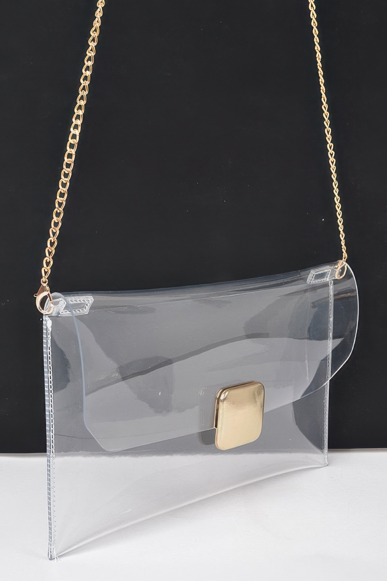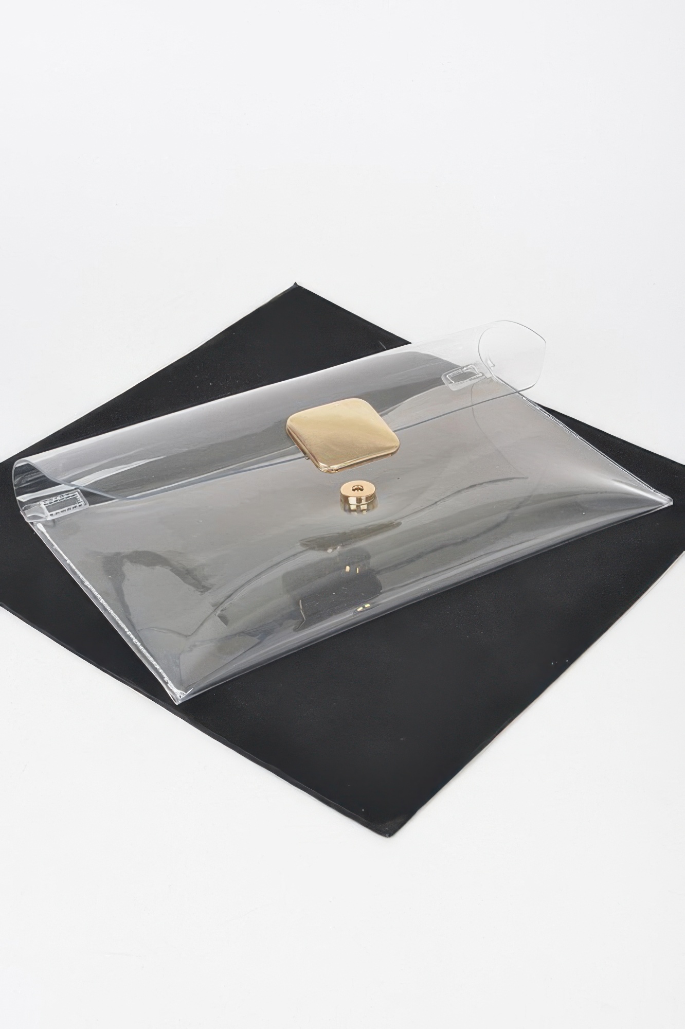 Chic and see-through, the Transparent Flap Clutch is your go-to for modern minimalism. With its clear PVC construction and sleek envelope silhouette, this clutch lets your curated essentials shine. It’s perfect for events where style and function meet—offering a bold yet polished look.