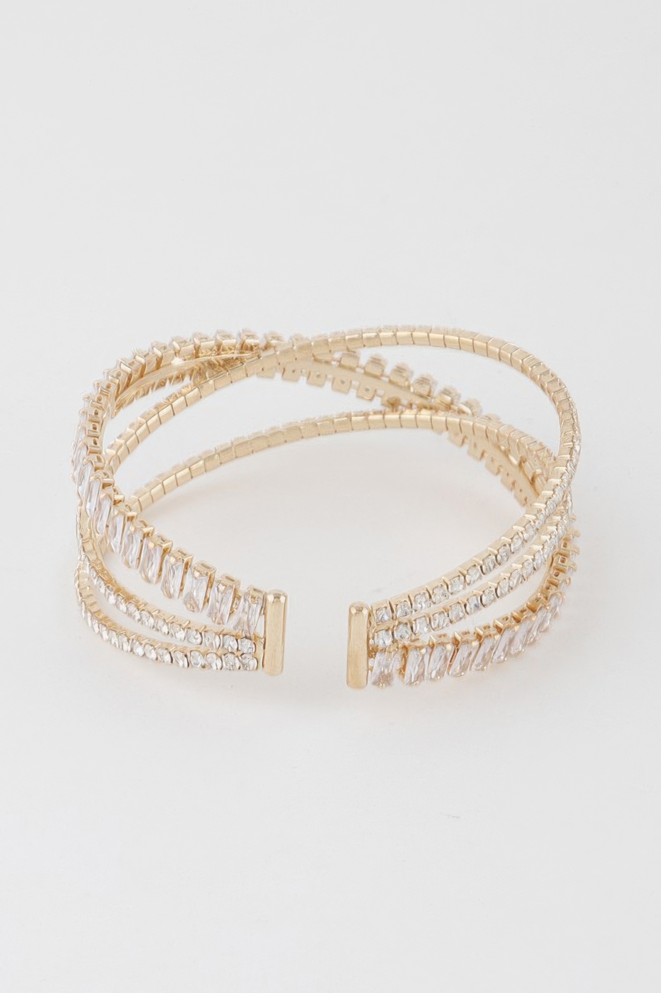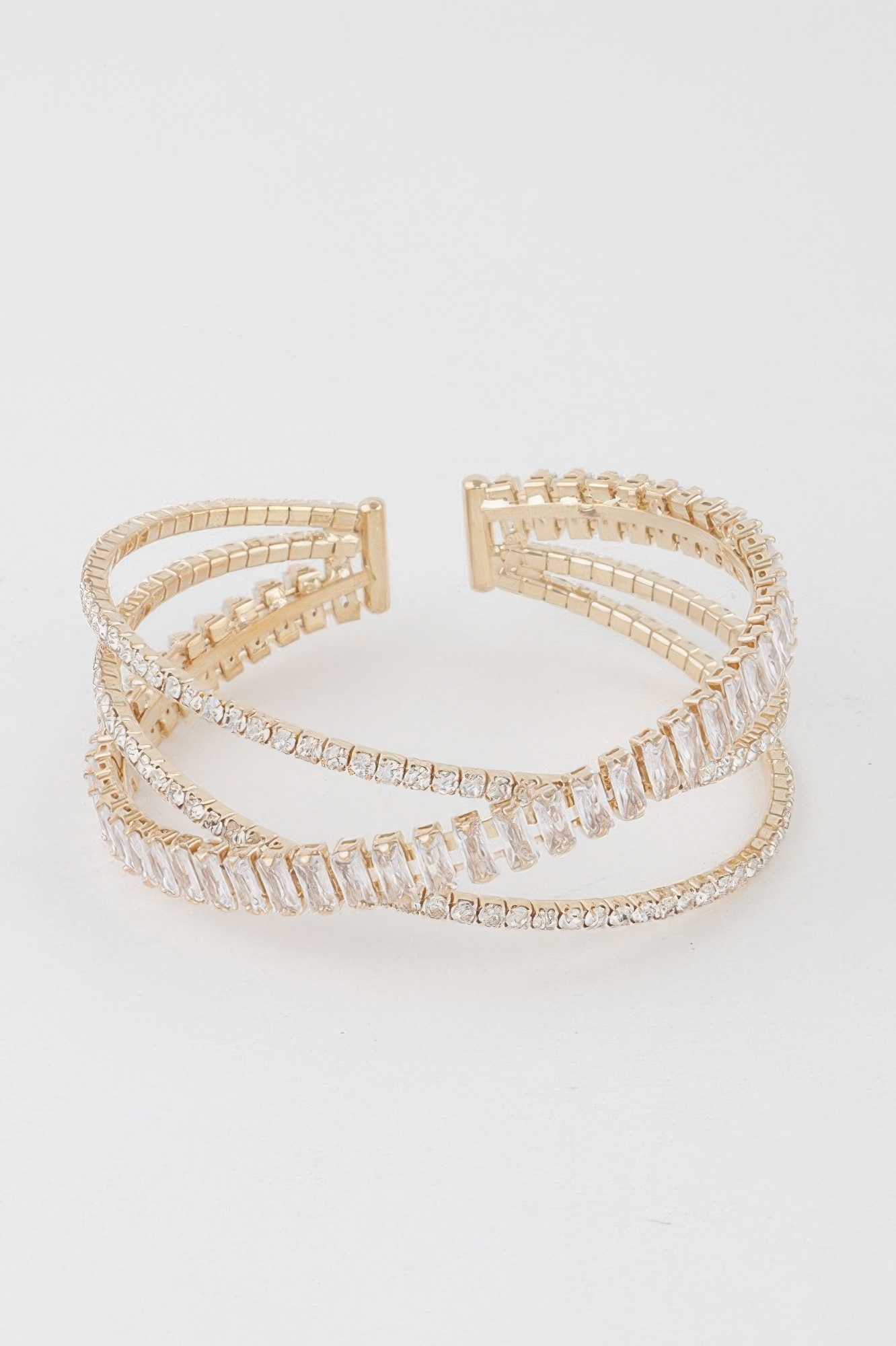 Cuff bracelet with triple crystal laced design