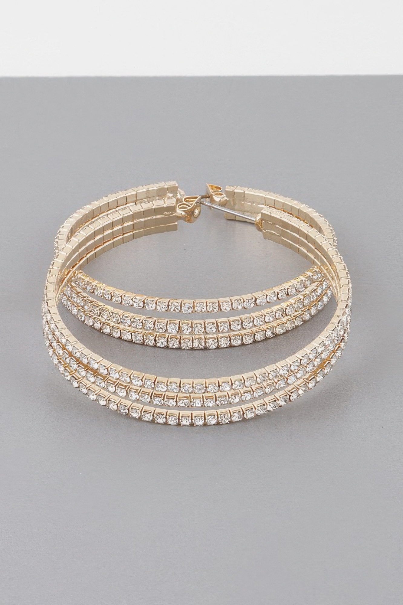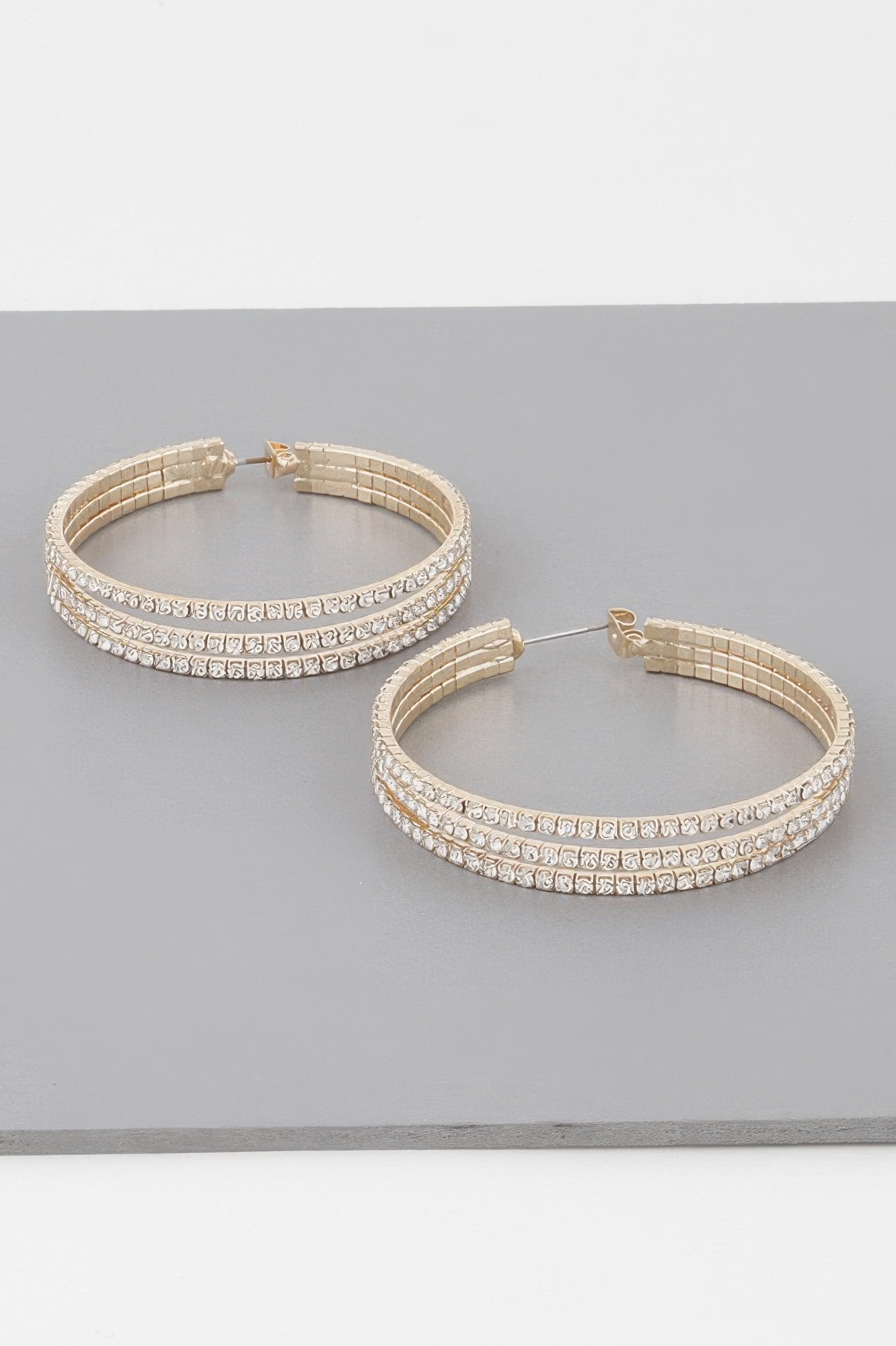 These triple jewel hoop earrings offer a refined take on a classic silhouette. Designed with jewel accents, they provide subtle sparkle while maintaining a clean, balanced look. The medium-sized hoop makes them easy to style for both everyday wear and special occasions. Lightweight and comfortable, they are ideal for extended use. A versatile piece, they enhance any outfit with understated elegance.