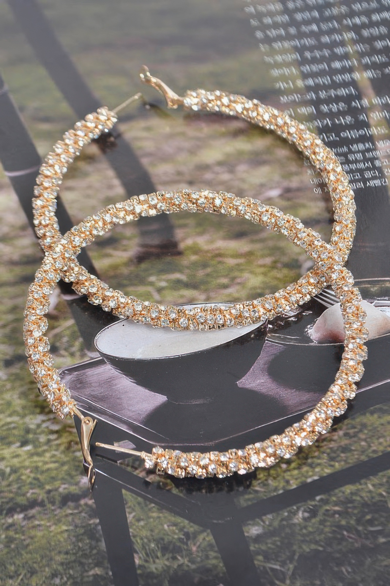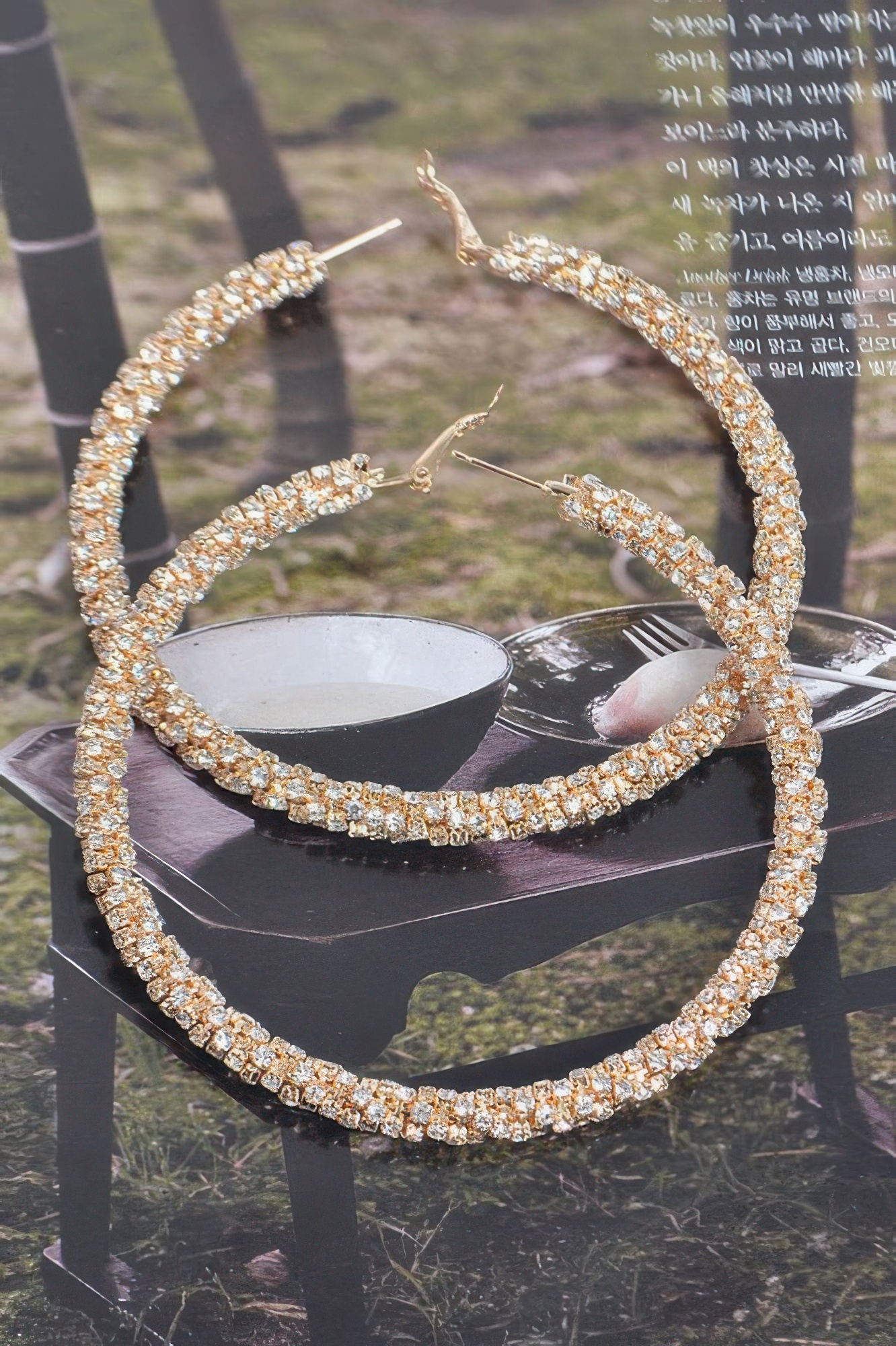 Twisted hoop earrings with rhinestone embellishment