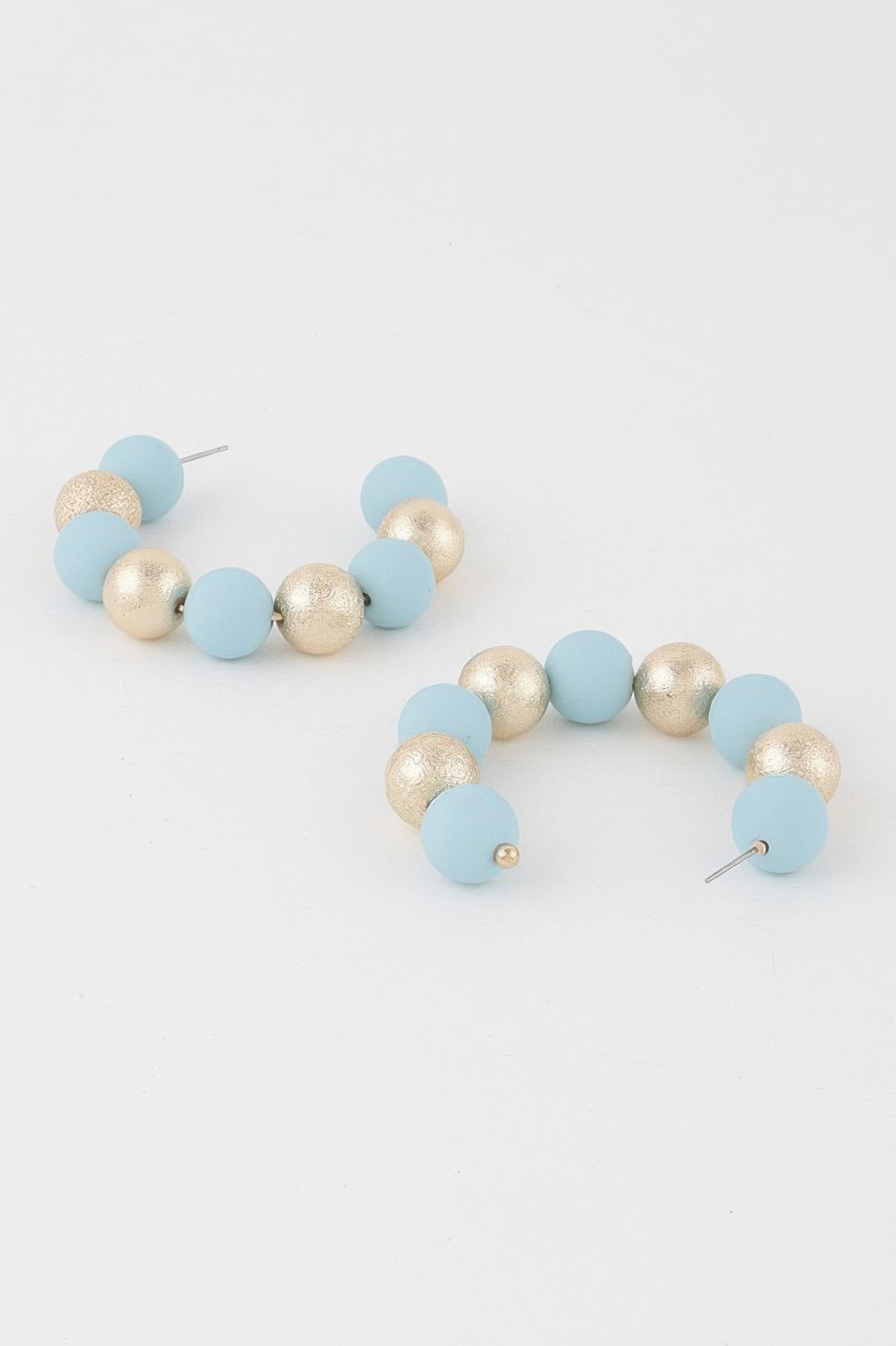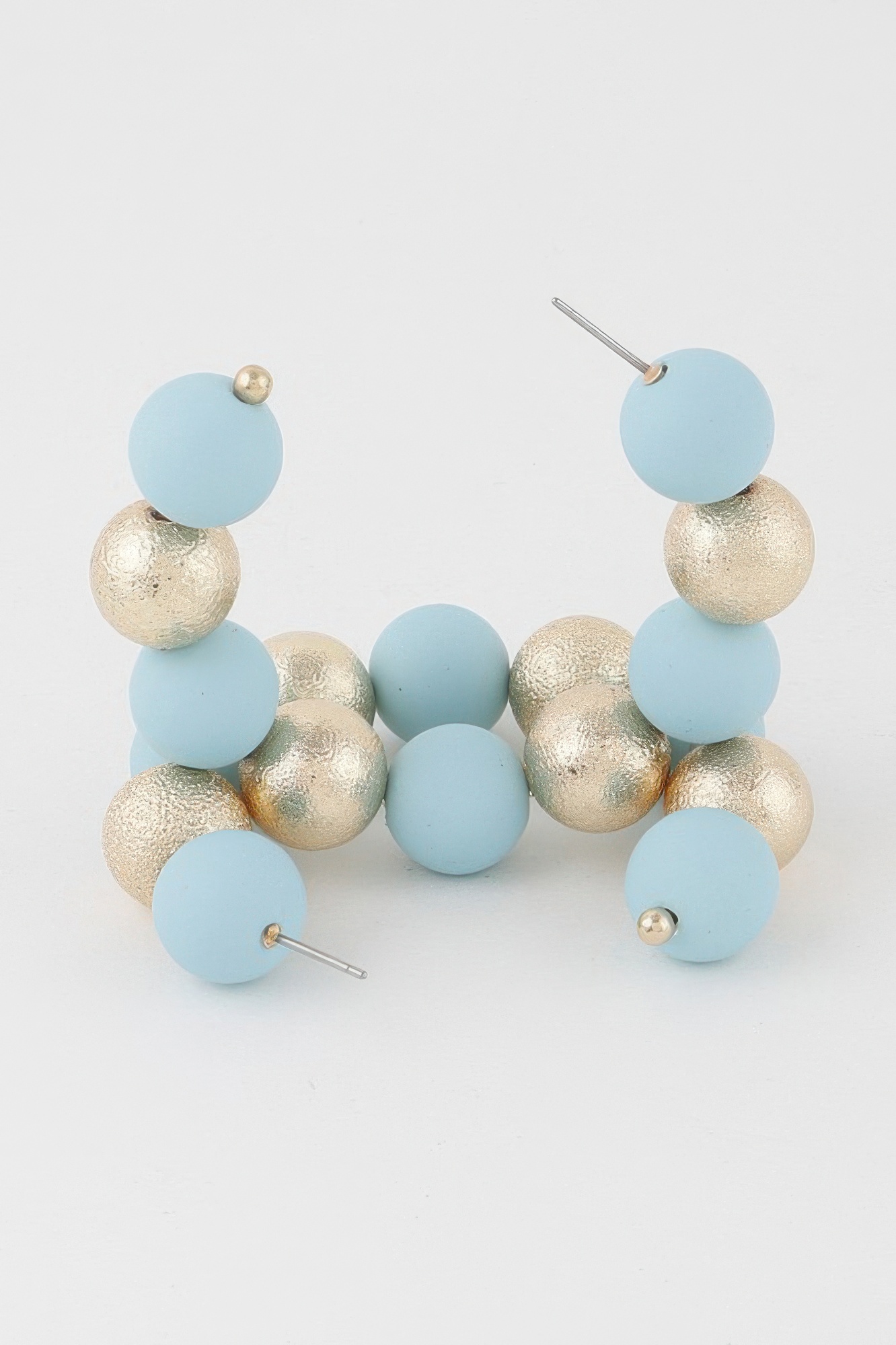 The Two Toned Beaded Hoop Earrings offer vibrant contrast with dimensional texture. Featuring alternating tones along a classic hoop silhouette, they create dynamic visual interest. Their medium size makes them a standout accessory while remaining versatile enough for everyday wear. Lightweight and balanced, they transition seamlessly from casual outfits to elevated ensembles. A modern update to a timeless hoop.
