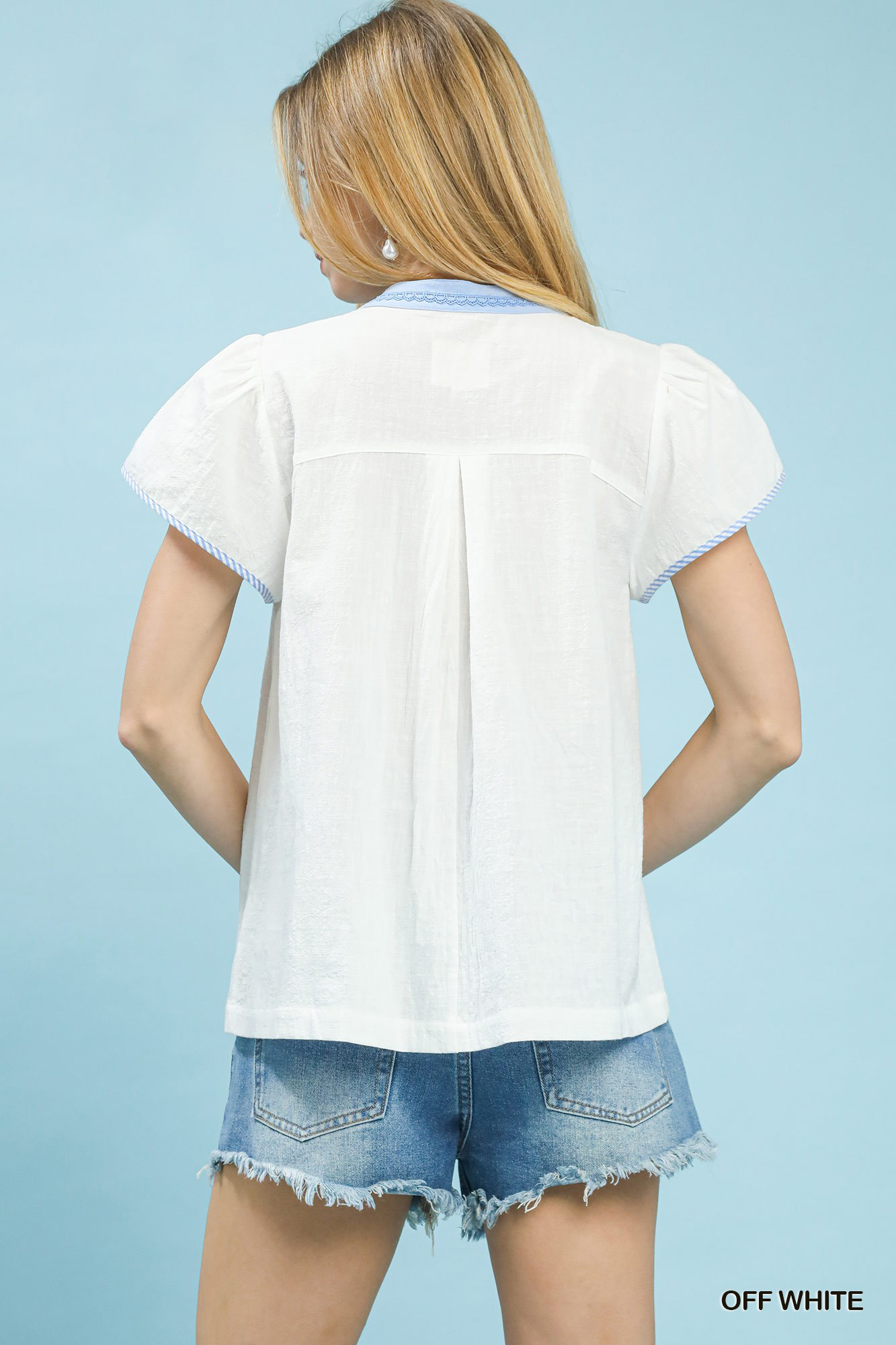 Umgee Abstract Applique Split Neck Top