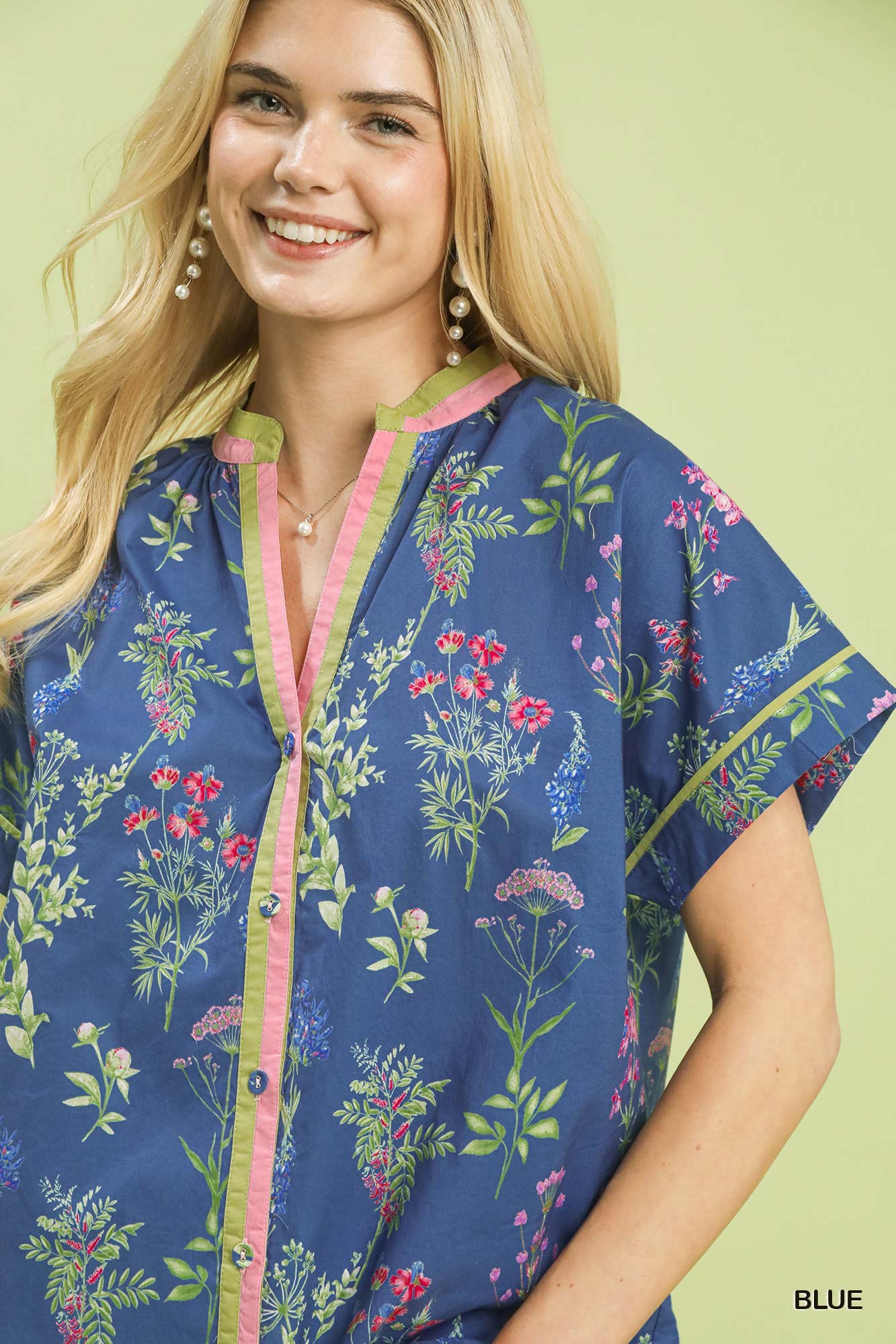 The Botanical Floral Button Front Top is a charming and versatile piece for your wardrobe. Featuring a beautiful botanical floral print, this top is perfect for adding a touch of nature-inspired style to your outfit. The button front detail adds a classic and chic touch to the design. The top can be easily dressed up or down, making it suitable for various occasions. Pair it with jeans for a casual day out or with a skirt for a more dressed-up look.