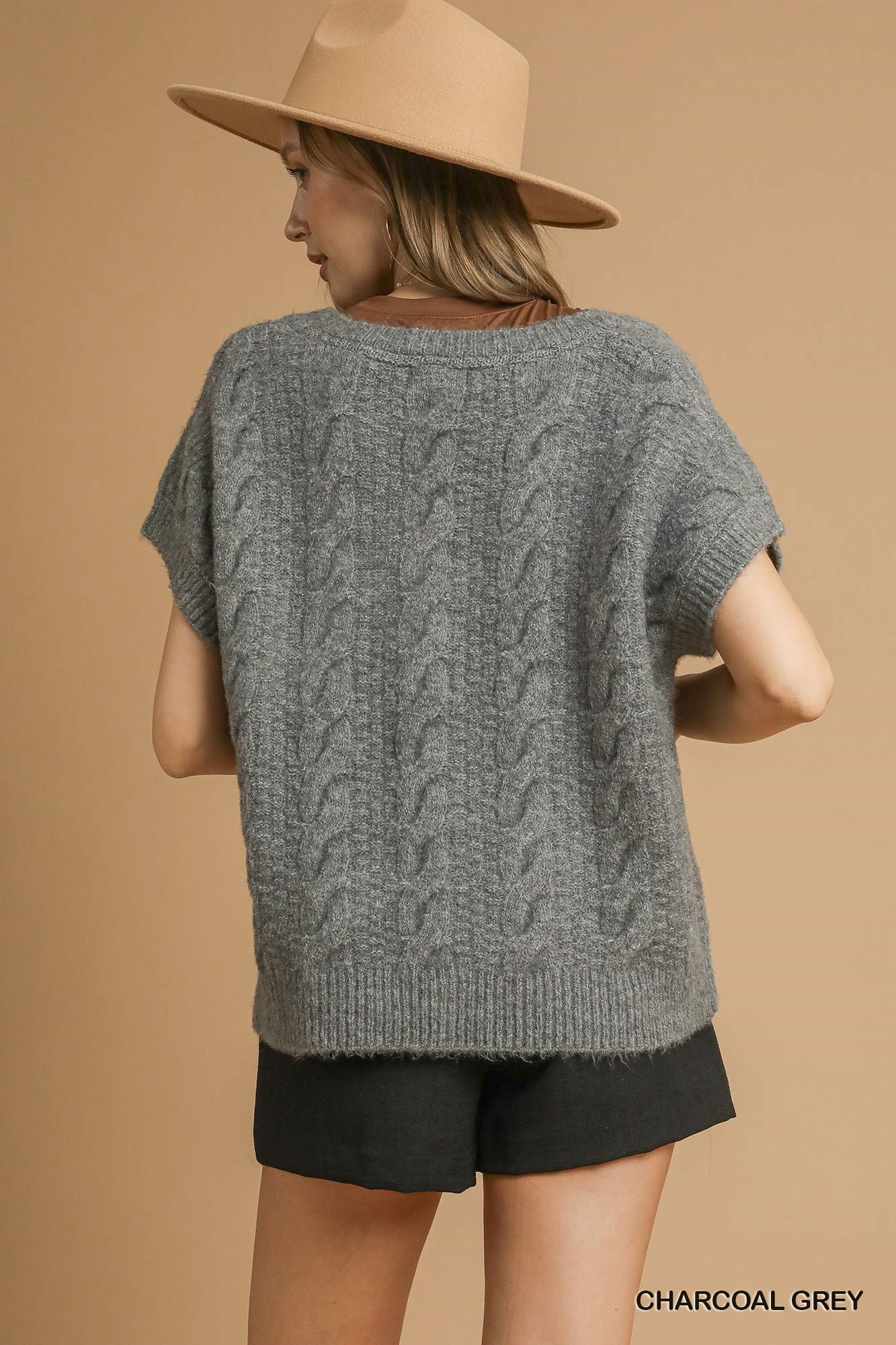 Stay cozy and stylish in this Cable Knit Sweater featuring a classic cable knit design. The V-neck adds a touch of sophistication, while the ribbed hem and neckline provide a polished finish. With its relaxed, boxy silhouette, this sweater offers both comfort and a trendy look. Perfect for layering or wearing on its own, this sweater is a versatile addition to any wardrobe. Embrace the timeless charm of cable knit with this must-have piece.