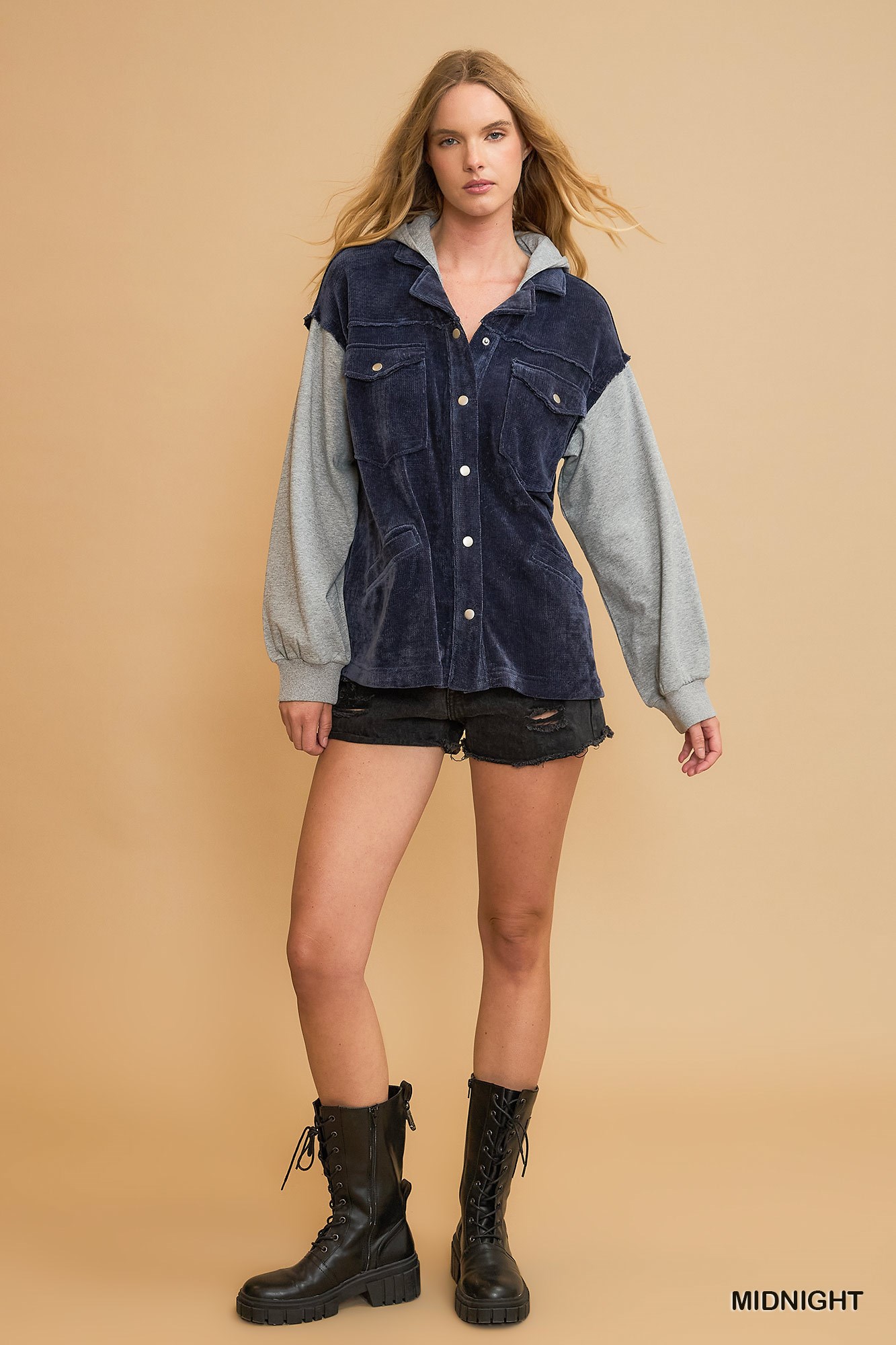 Umgee Contrast Hooded Chenille Jacket