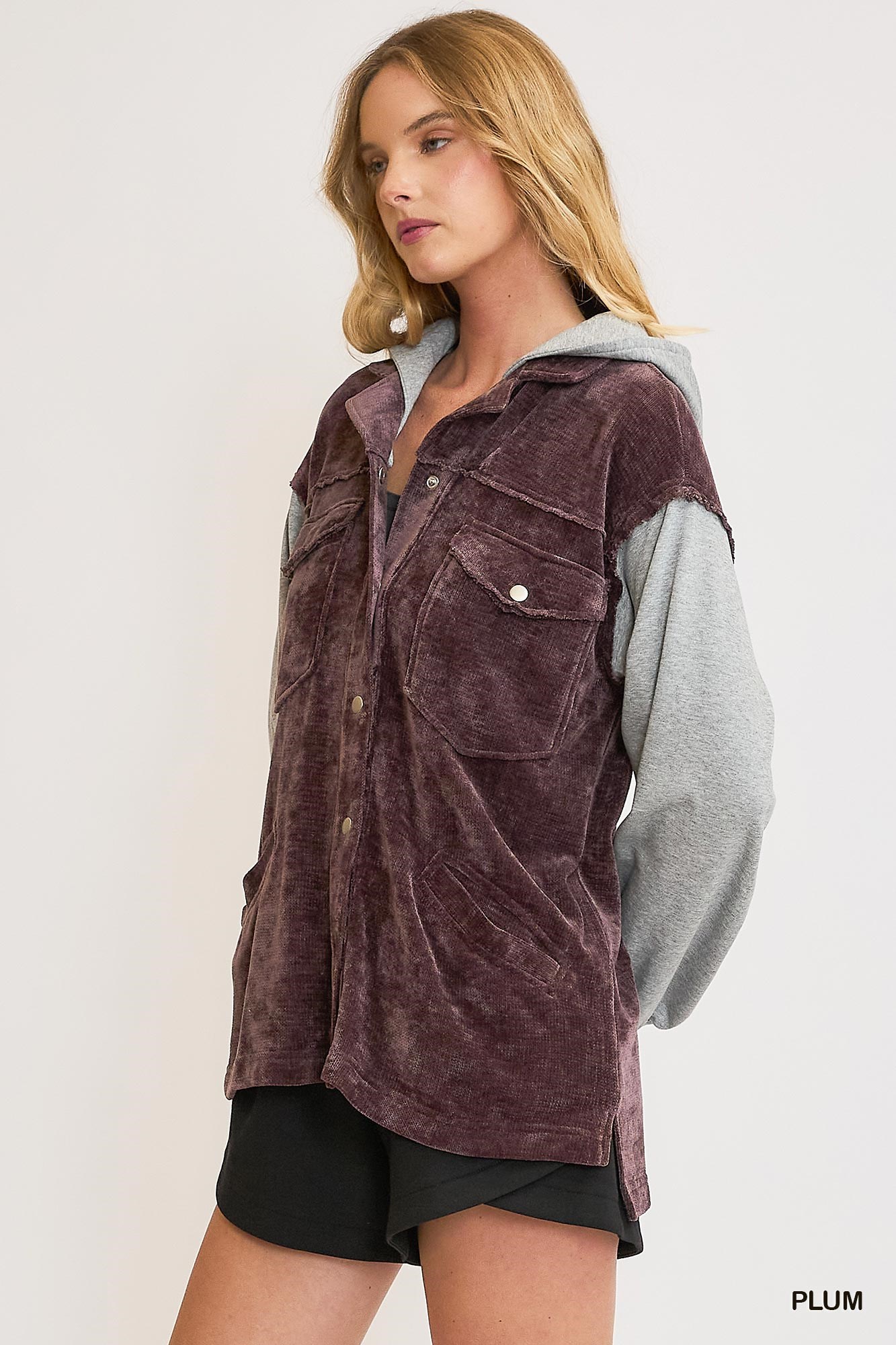 This cozy hooded jacket is crafted from soft chenille material, providing warmth and comfort. It features double pockets for practicality and added style. Perfect for chilly days, this jacket is both stylish and functional. Stay snug and stylish in this versatile piece that is ideal for layering. Elevate your outerwear collection with this chic hooded chenille jacket.