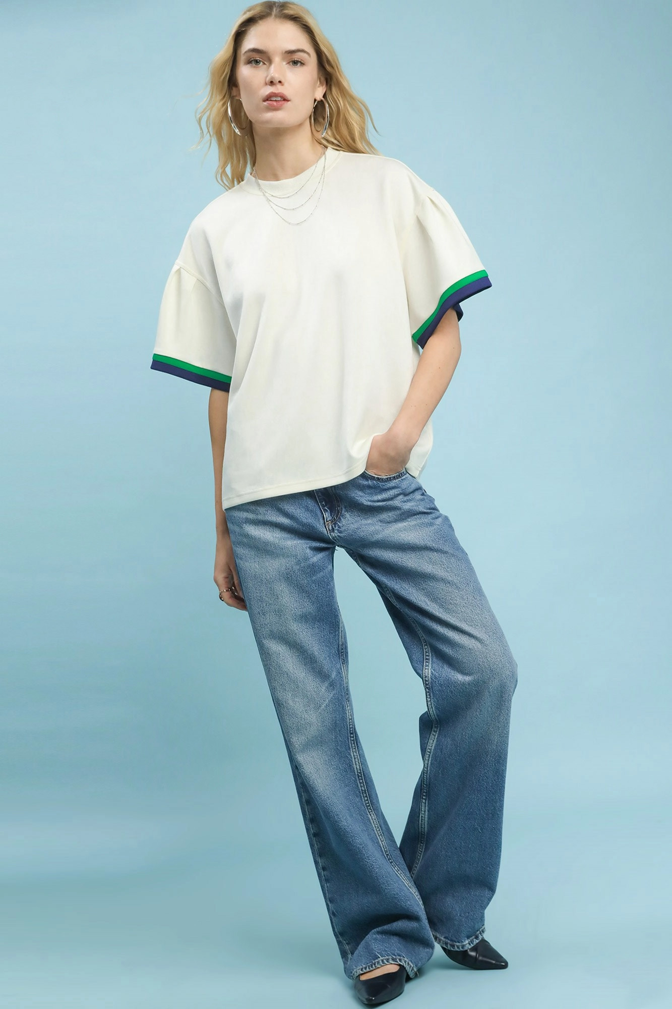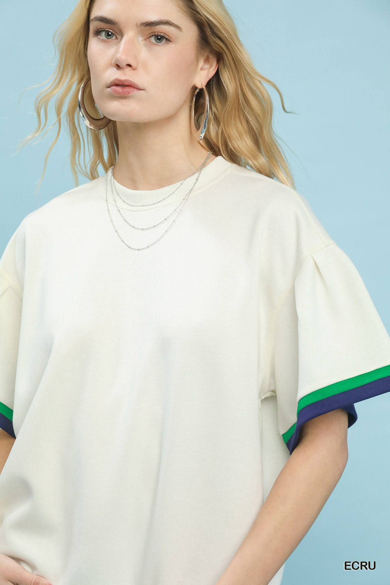 The Neo Knit Bell Sleeve Top features a classic round neckline that offers timeless elegance. Its short bell sleeves with contrast trim add a modern and stylish touch to the design. The top is accented with contrasting trim details for added visual interest. Unlined for a lightweight and comfortable feel, this top is perfect for effortless styling. Elevate your look with this chic and versatile piece that combines classic elements with contemporary style.