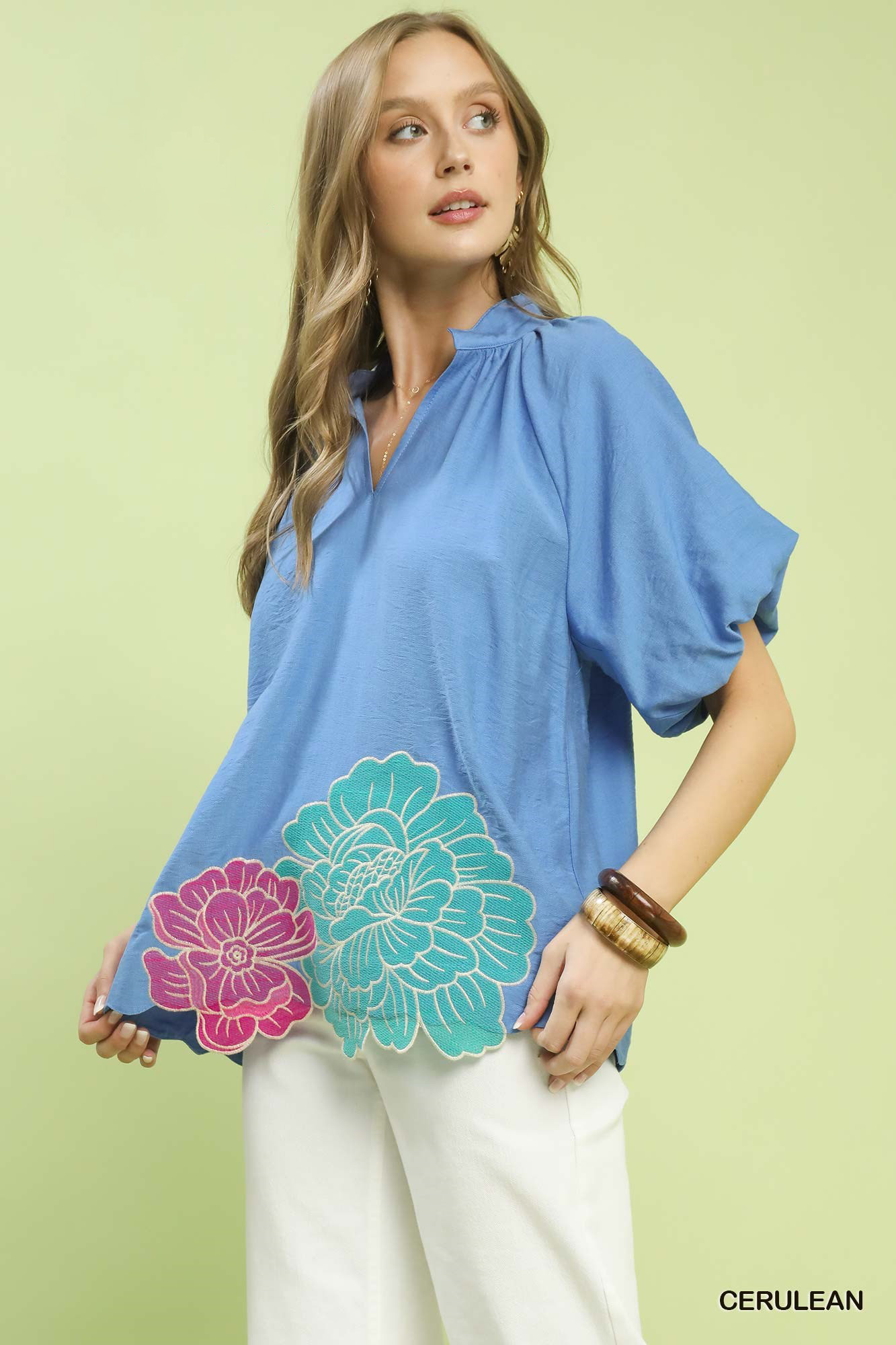 This floral embroidered hem top features delicate floral embroidery at the hem, a soft and lightweight fabrication, and a flattering relaxed fit, bringing a romantic and feminine touch to your everyday wardrobe while pairing easily with jeans, skirts, and shorts for effortless casual styling.