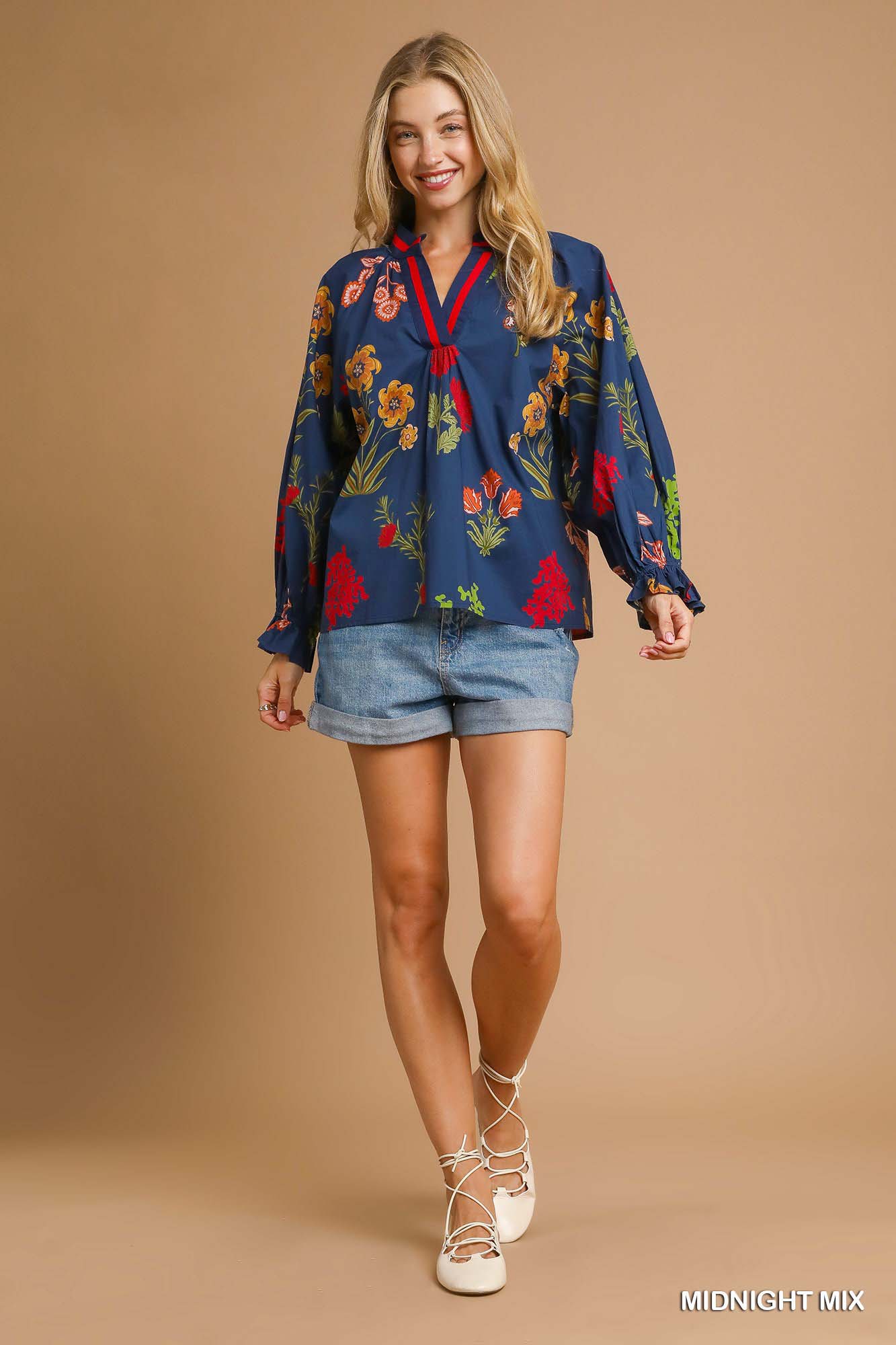 Step into spring with this elegant floral print flounce sleeve blouse. The delicate floral pattern adds a touch of femininity and romance to your outfit. The flounce sleeves give a trendy and stylish vibe to this classic piece. Perfect for dressing up any casual or office look with a hint of sophistication. Pair it with jeans or a skirt for a fresh and chic ensemble.