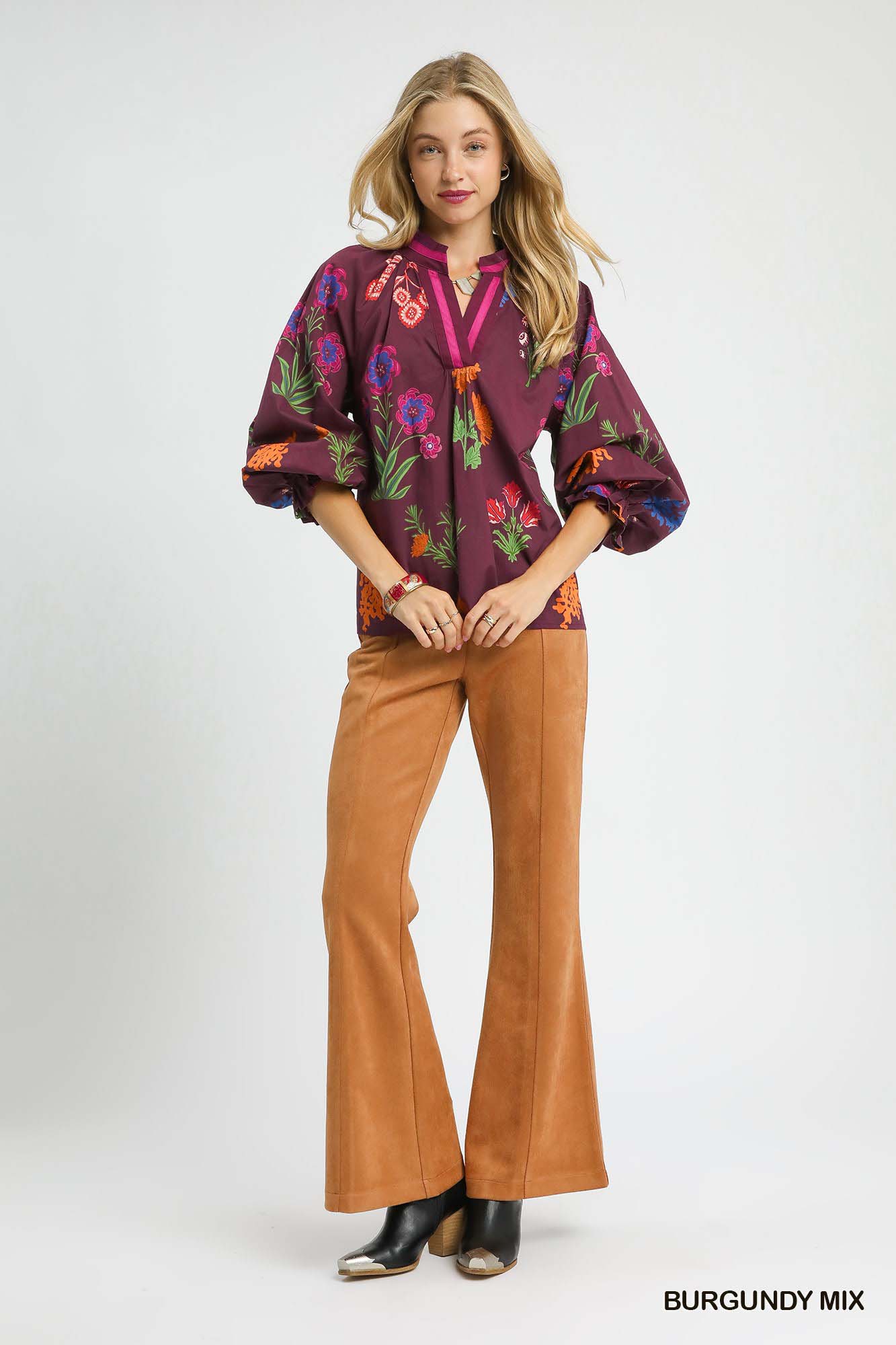 Step into spring with this elegant floral print flounce sleeve blouse. The delicate floral pattern adds a touch of femininity and romance to your outfit. The flounce sleeves give a trendy and stylish vibe to this classic piece. Perfect for dressing up any casual or office look with a hint of sophistication. Pair it with jeans or a skirt for a fresh and chic ensemble.