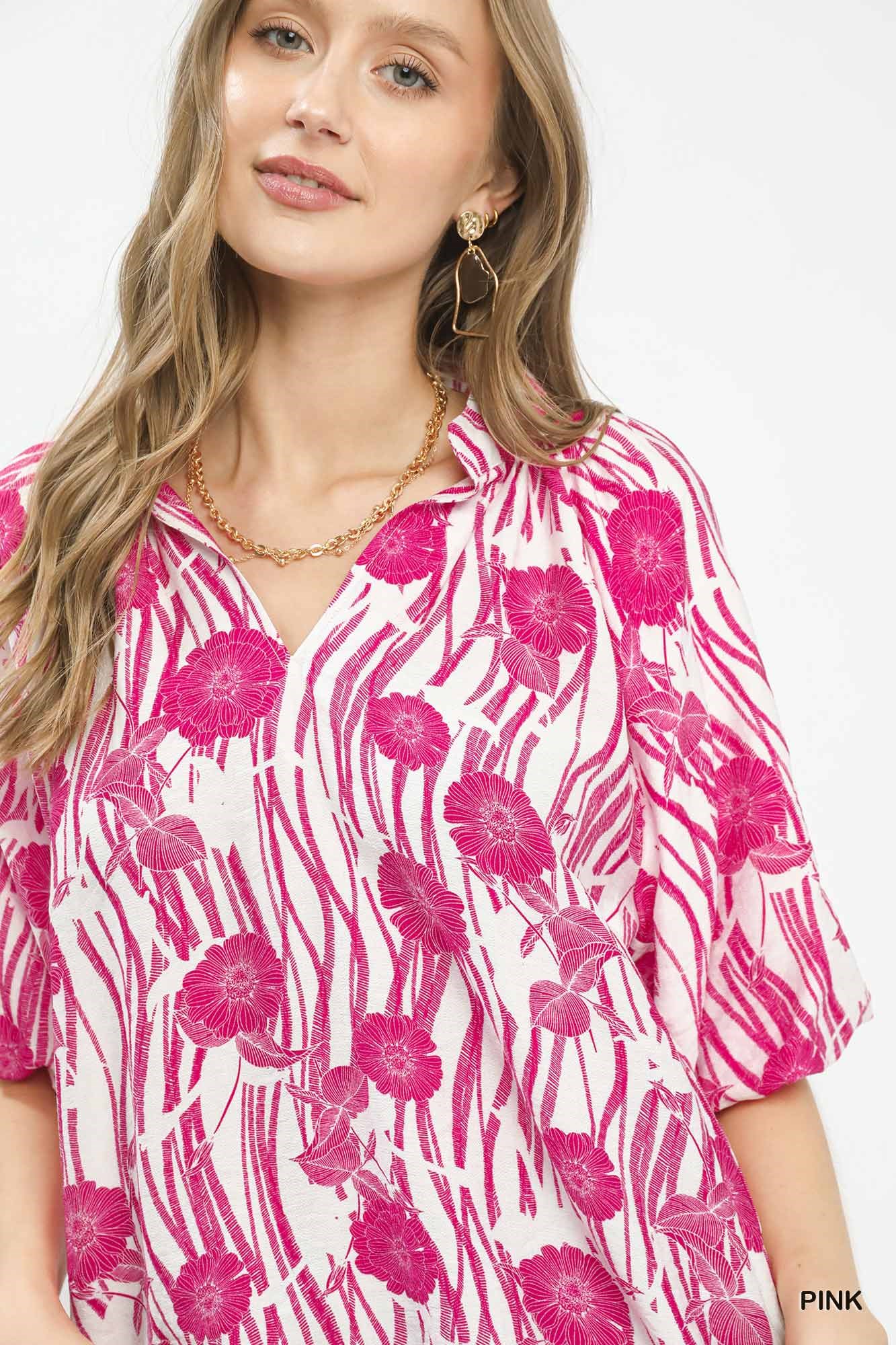 This Floral Scalloped Edge Puff Sleeve Blouse showcases a delicate floral print and charming scalloped trim for a romantic look. It features gentle puff sleeves that add soft volume and a feminine silhouette. The high-low curved hem creates a flowy, flattering fit with stylish movement. Crafted from lightweight fabric, it ensures breathable comfort all day long. Perfect for casual outings or dressy occasions, it pairs effortlessly with jeans, skirts, or shorts.