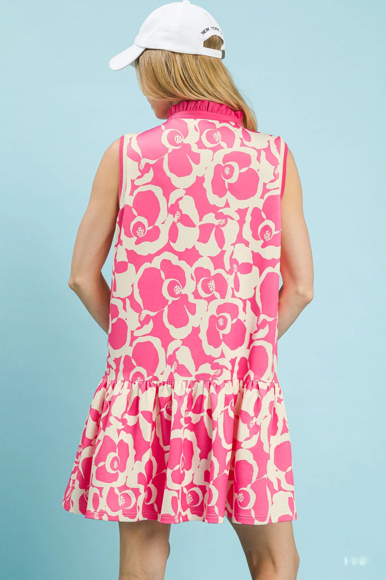 This sleeveless mini dress features a vibrant floral print and a playful ruffle hem, perfect for adding a touch of fun to your wardrobe. The V-neck design adds a modern touch, while the lightweight fabric ensures comfort and breathability. Ideal for casual outings, summer parties, or a day at the beach. Made from a soft and breathable material, this dress is easy to care for and perfect for warm weather. The ruffle hem adds a flirty and feminine touch, making it a standout piece in your collection.