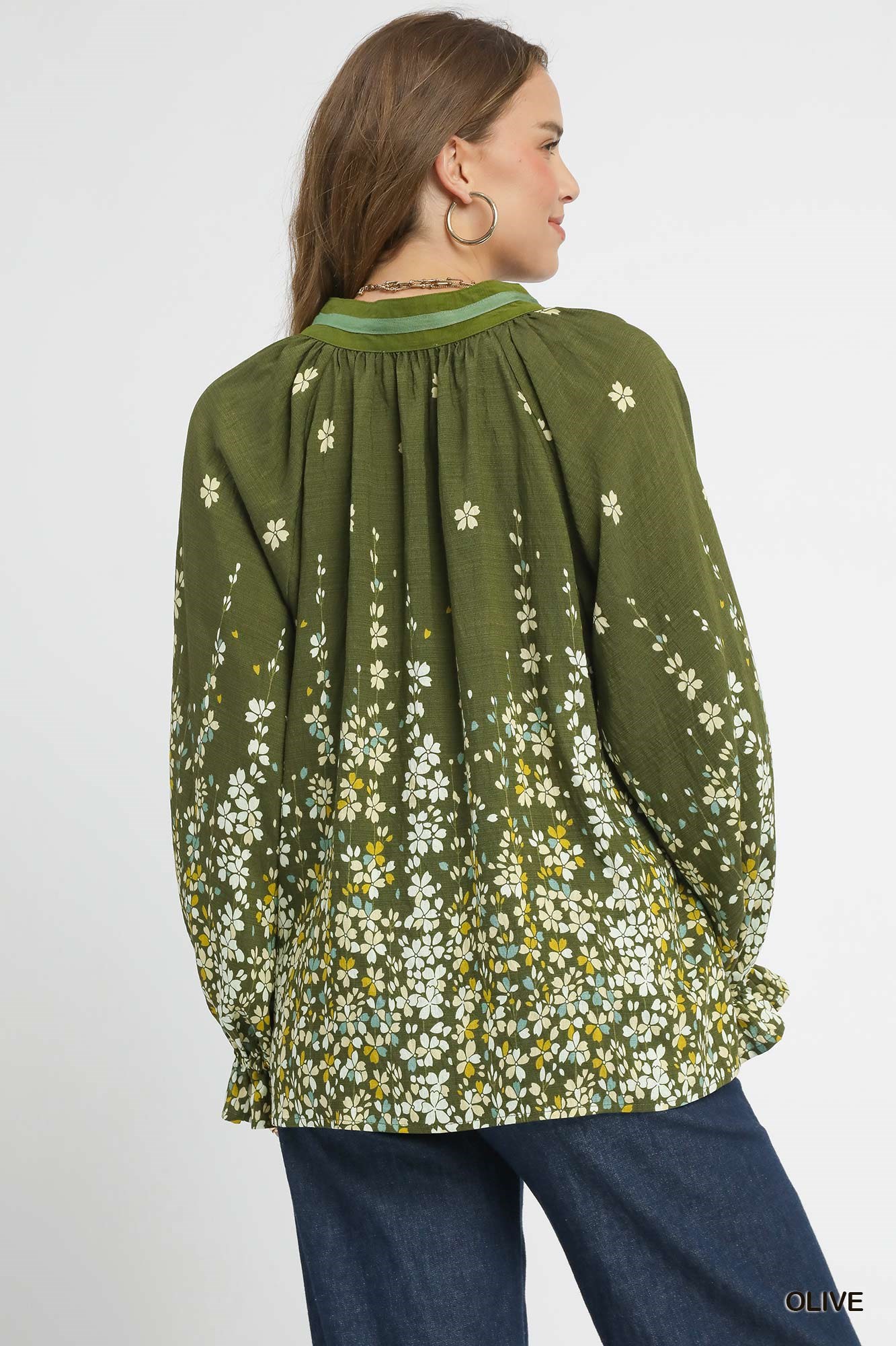 The Floral Vine Print Blouse with Balloon Sleeves is a charming and elegant piece that exudes sophistication. The delicate floral vine print adds a touch of romance to the blouse. The balloon sleeves create a dramatic and stylish silhouette, perfect for making a statement. Embrace the whimsical and feminine vibes with this beautiful floral vine print blouse.
