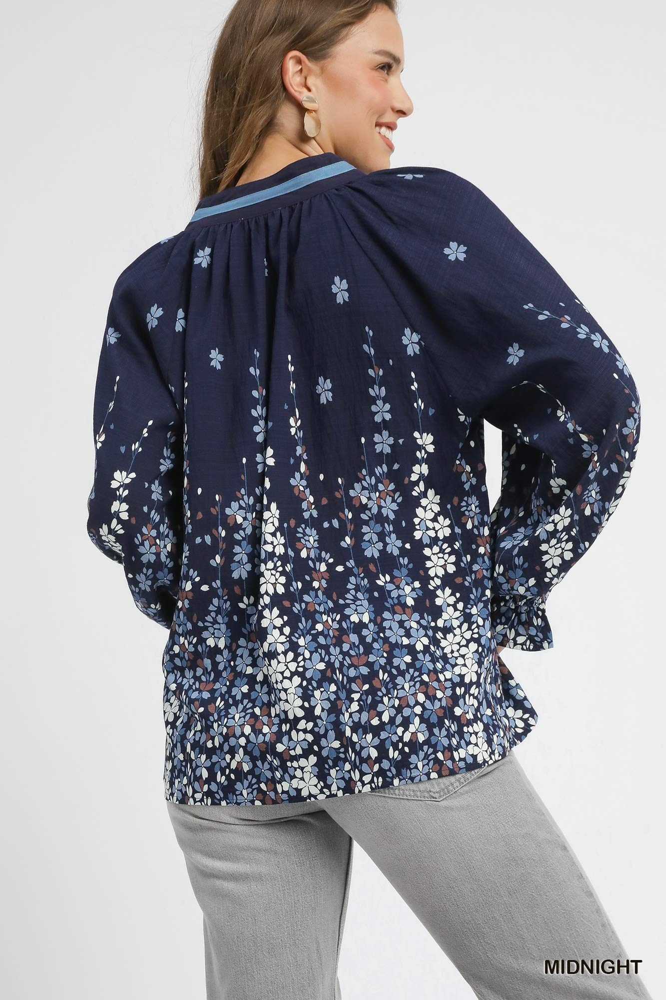 The Floral Vine Print Blouse with Balloon Sleeves is a charming and elegant piece that exudes sophistication. The delicate floral vine print adds a touch of romance to the blouse. The balloon sleeves create a dramatic and stylish silhouette, perfect for making a statement. Embrace the whimsical and feminine vibes with this beautiful floral vine print blouse.