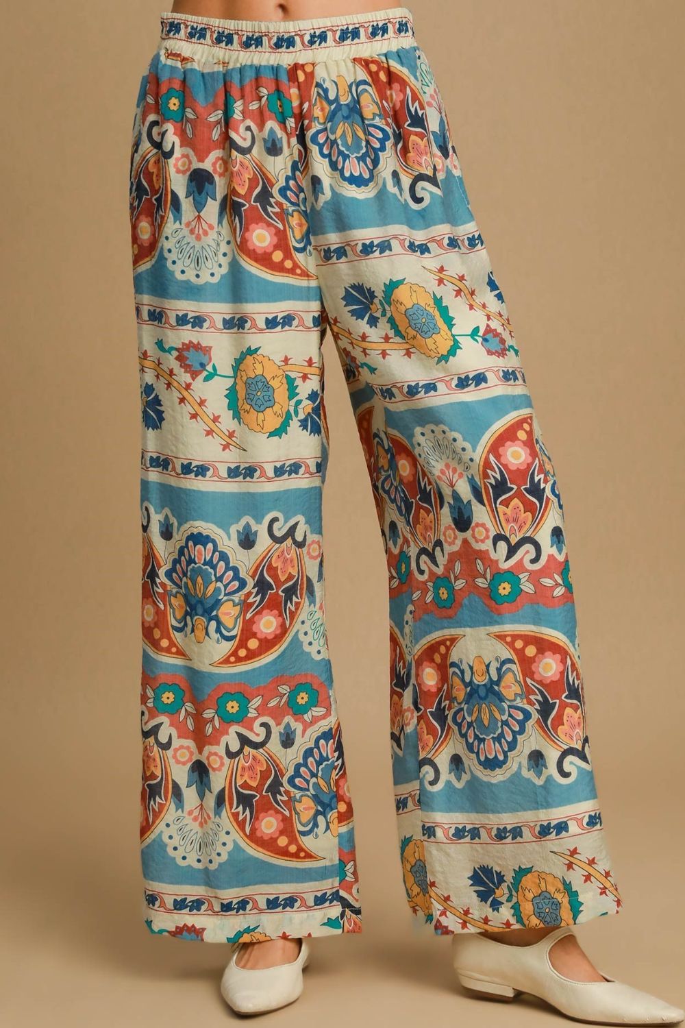 Wide Leg Border Print Pants feature a bold and eye-catching design, perfect for making a fashion statement. Pair them with a simple top to let the pants stand out in style.