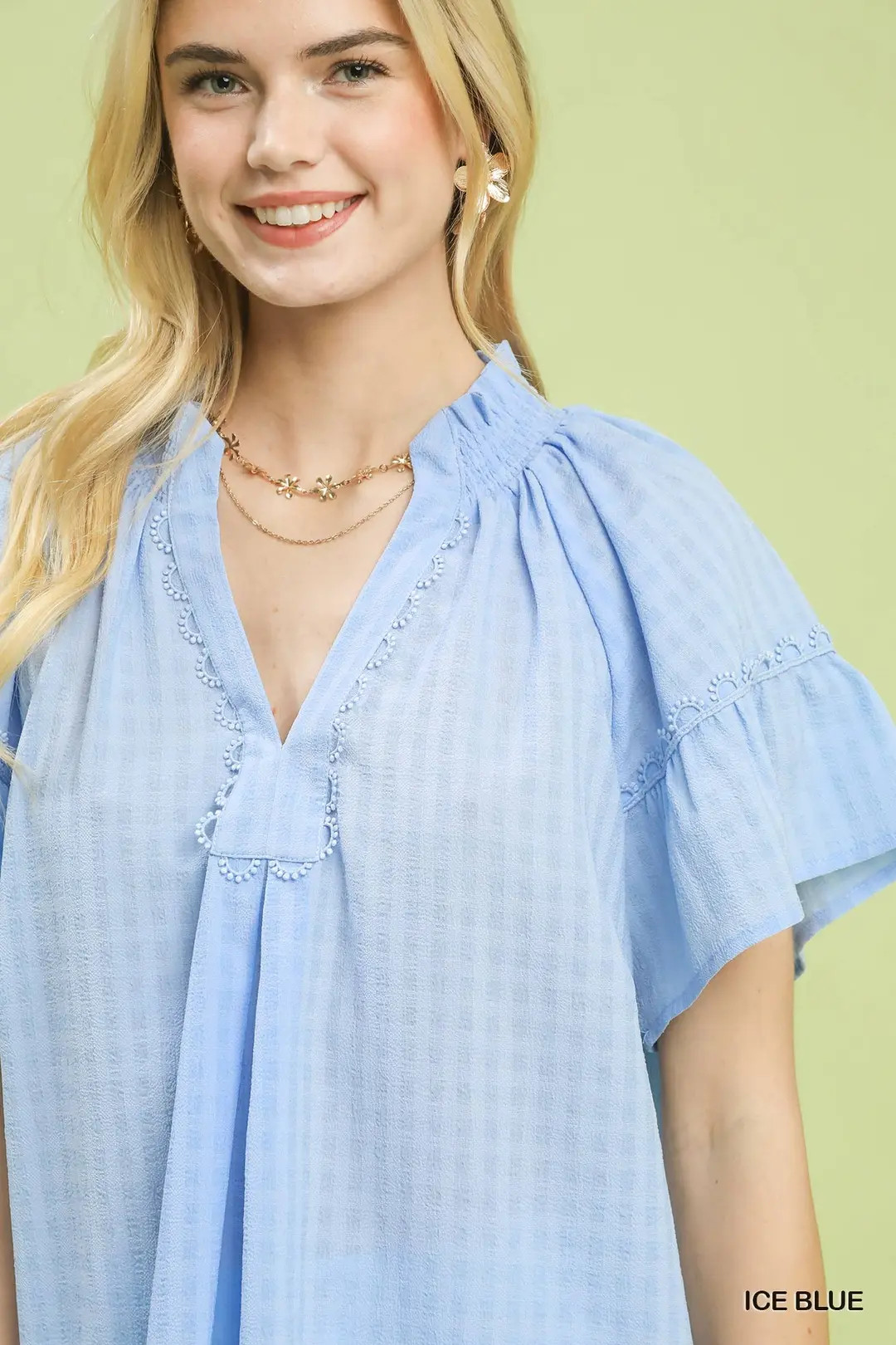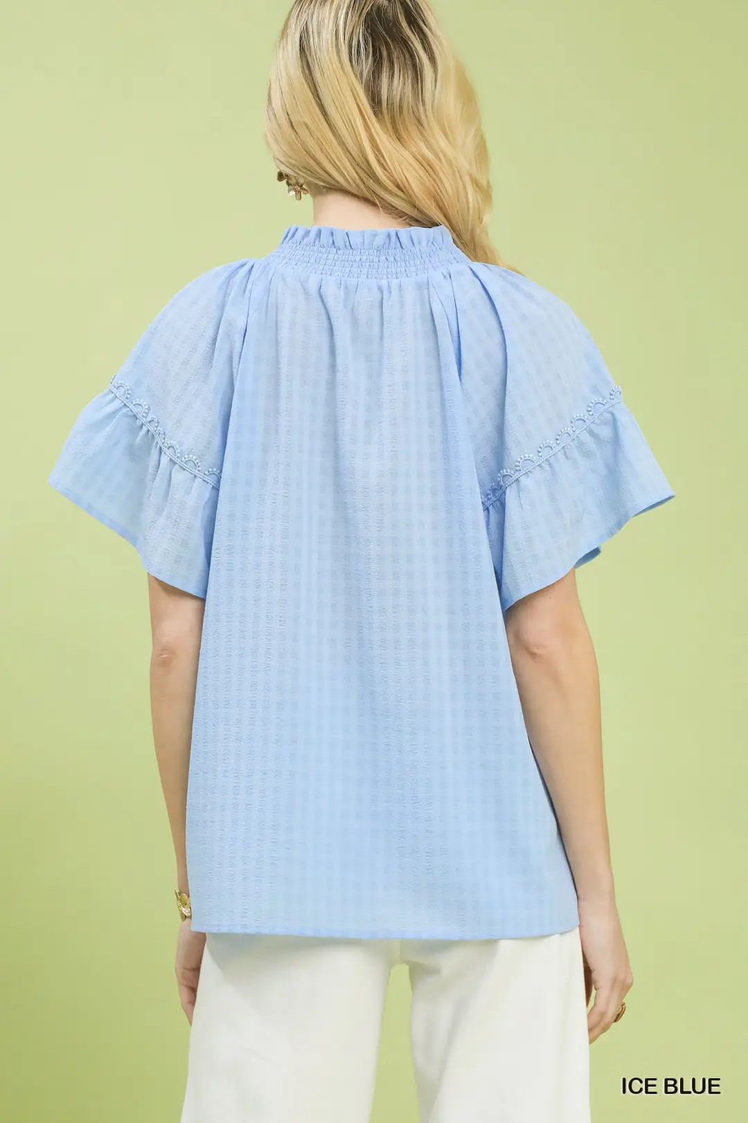 Adorned with a classic gingham pattern, this charming top features romantic puff sleeves and delicate lace trim for soft feminine appeal. The timeless gingham print delivers fresh seasonal style, while refined lace detailing adds subtle vintage elegance. Cut in a relaxed, comfortable fit with lightweight breathable fabric, it ensures all-day ease and graceful wear. Effortlessly versatile to pair with denim, skirts and casual bottoms, it is perfect for daily outings, brunch dates, weekend trips and sweet everyday styling.