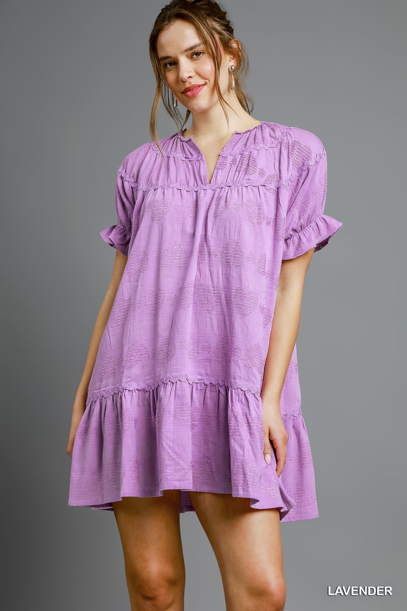 This adorable babydoll dress features a charming heart pattern and ruffle detailing on the short sleeves. The playful design adds a touch of sweetness to this feminine and flirty dress. Perfect for a casual day out or a special occasion, this dress is versatile and cute. Embrace your girly side and have fun in this lovely heart pattern babydoll dress with ruffle sleeves.
