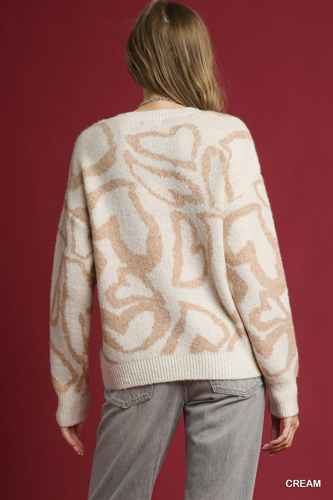Umgee Heart Print Crew Neck Sweater