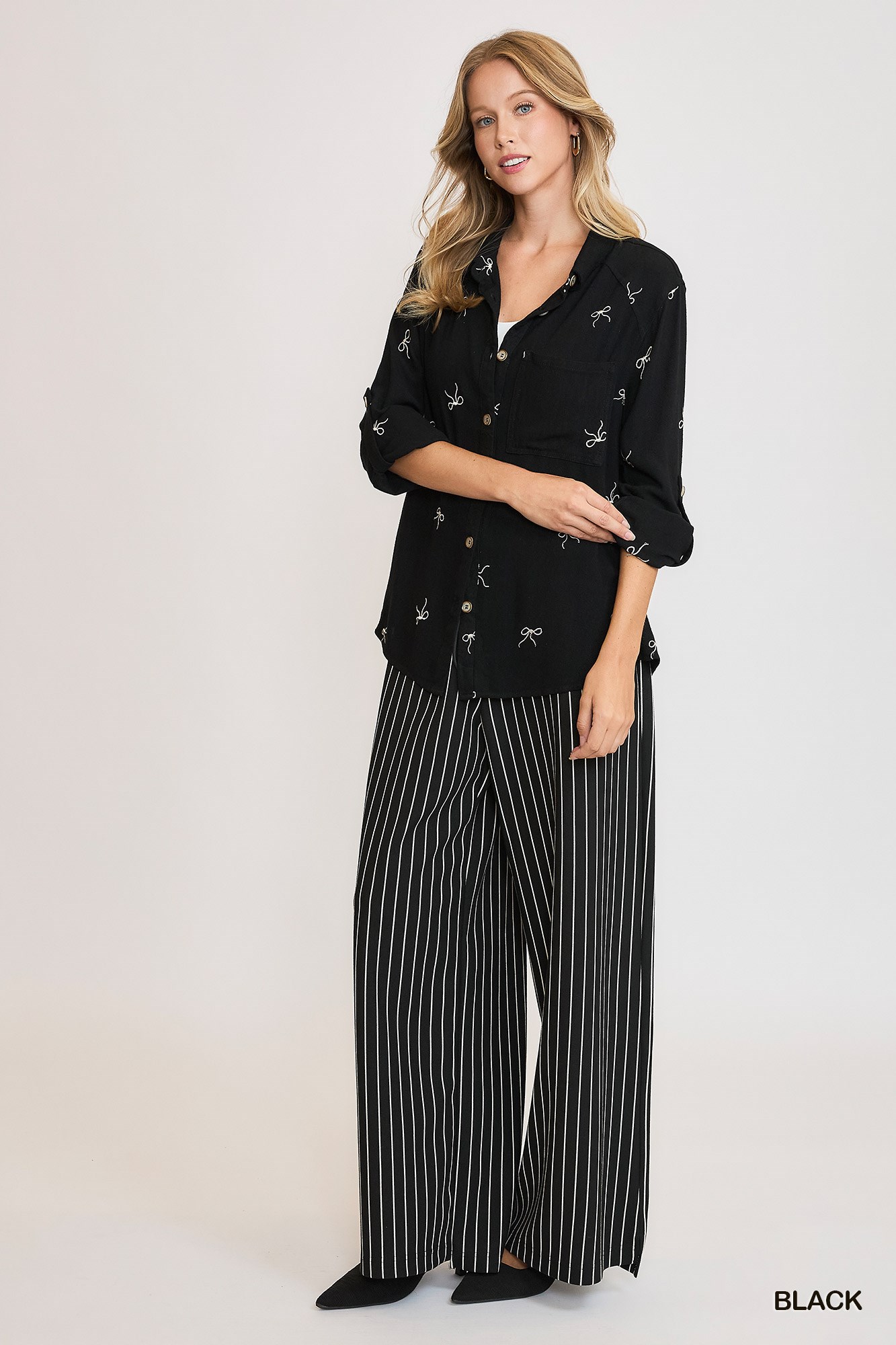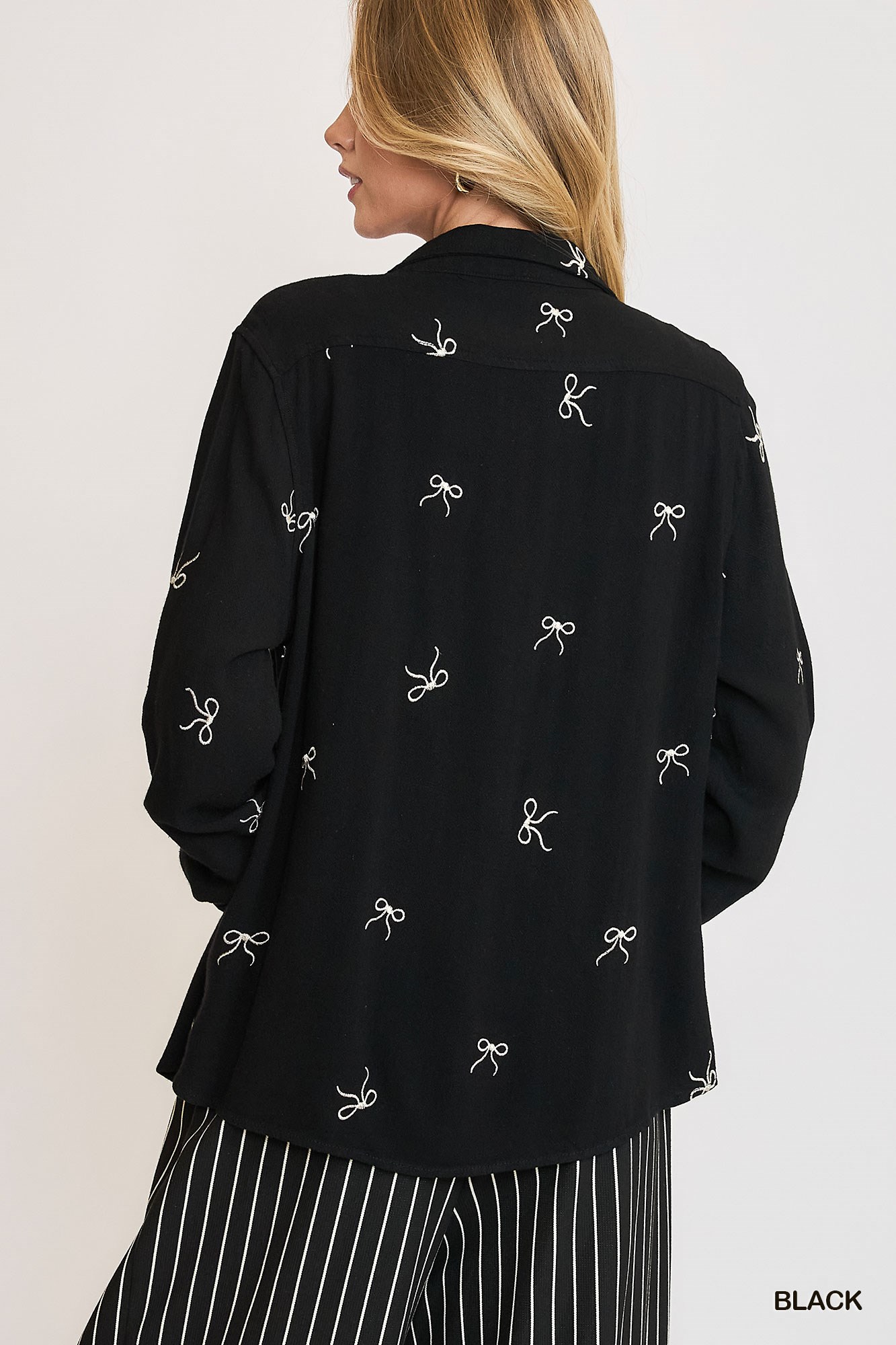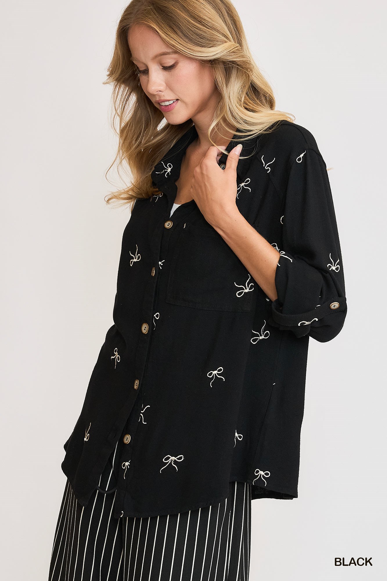 The Linen Blend Fitted Shirt with Ribbon Embroidery Details is a sophisticated and elegant piece that exudes charm and style. Crafted from a linen blend fabric, this shirt offers a luxurious feel and a flattering fit. The intricate ribbon embroidery details add a touch of texture and visual interest to the classic design, elevating it to a statement piece. Whether worn casually with jeans or dressed up with trousers or a skirt, this shirt is versatile and suitable for a variety of occasions. The delicate embroidery enhances the overall look of the shirt, making it a standout addition to your wardrobe.
