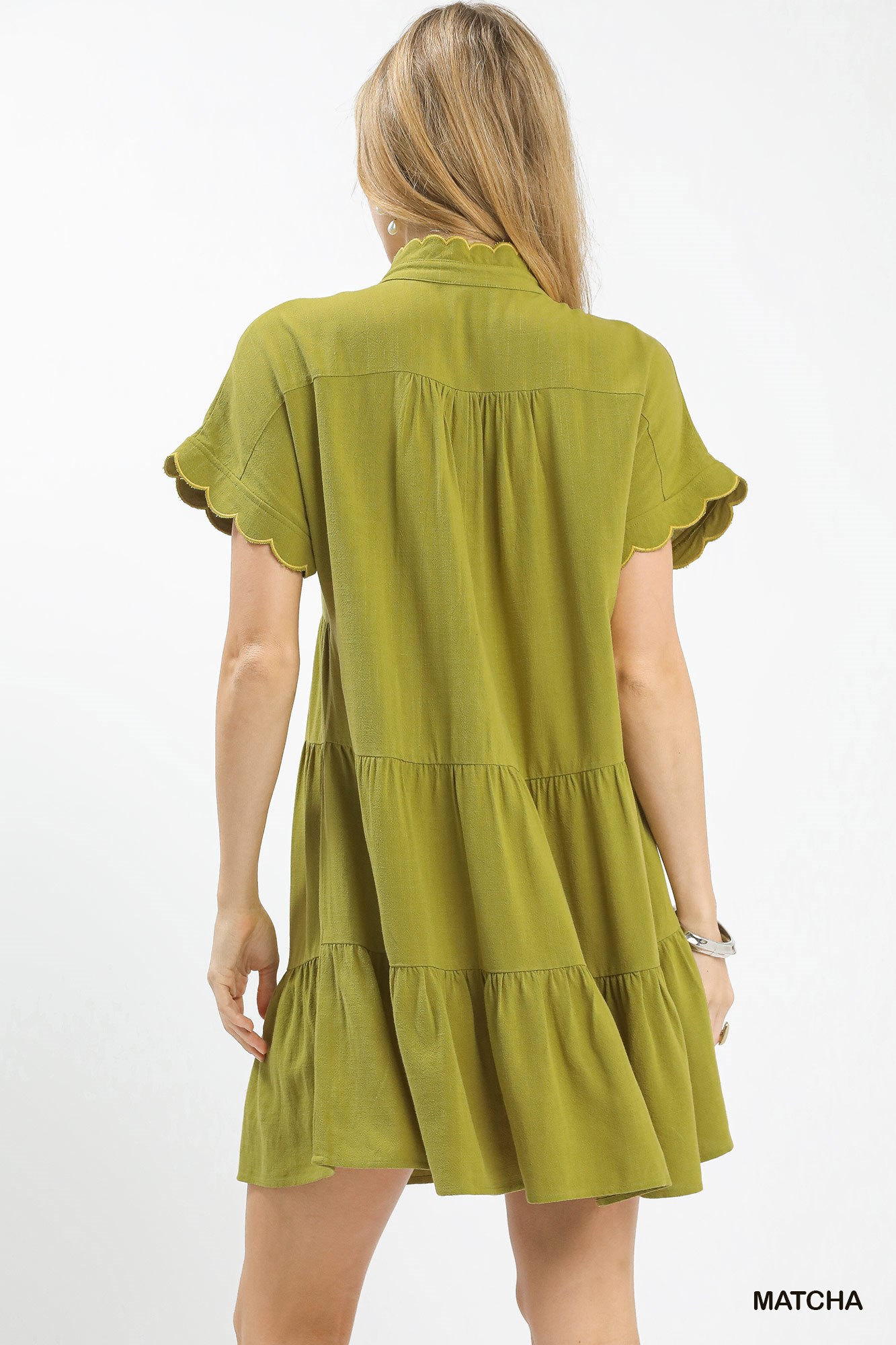 This Linen Mini Dress with Scallop Trim is crafted from breathable linen for lightweight, airy comfort. It features a flattering mini length and a relaxed silhouette perfect for warm days. Delicate scallop trim adds a sweet, refined detail to the clean design. The natural linen texture gives it a casual yet polished summer vibe. Versatile and easy to style, it pairs effortlessly with sandals for a fresh, effortless look.