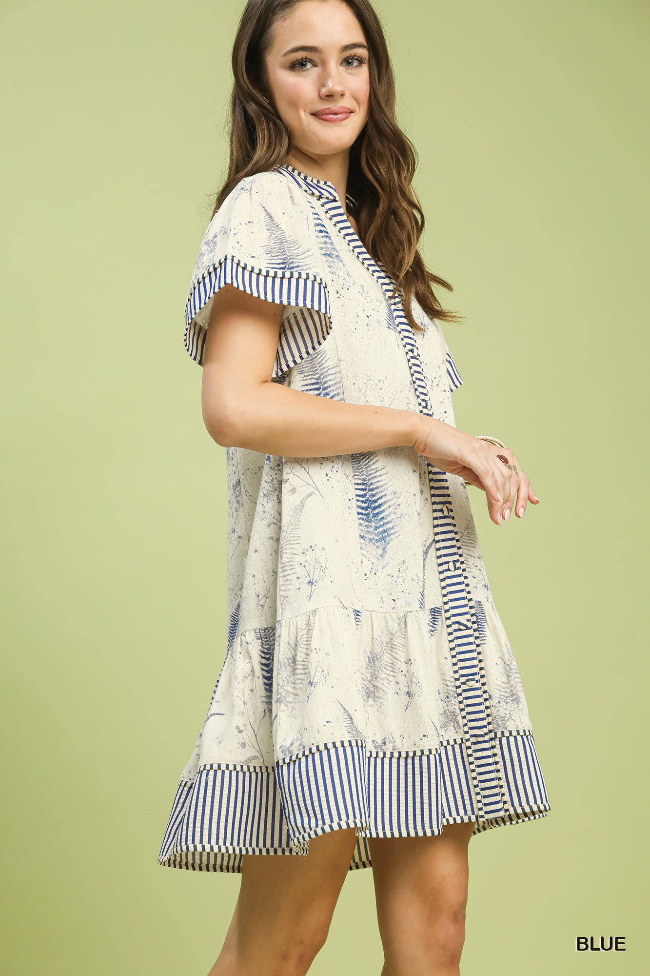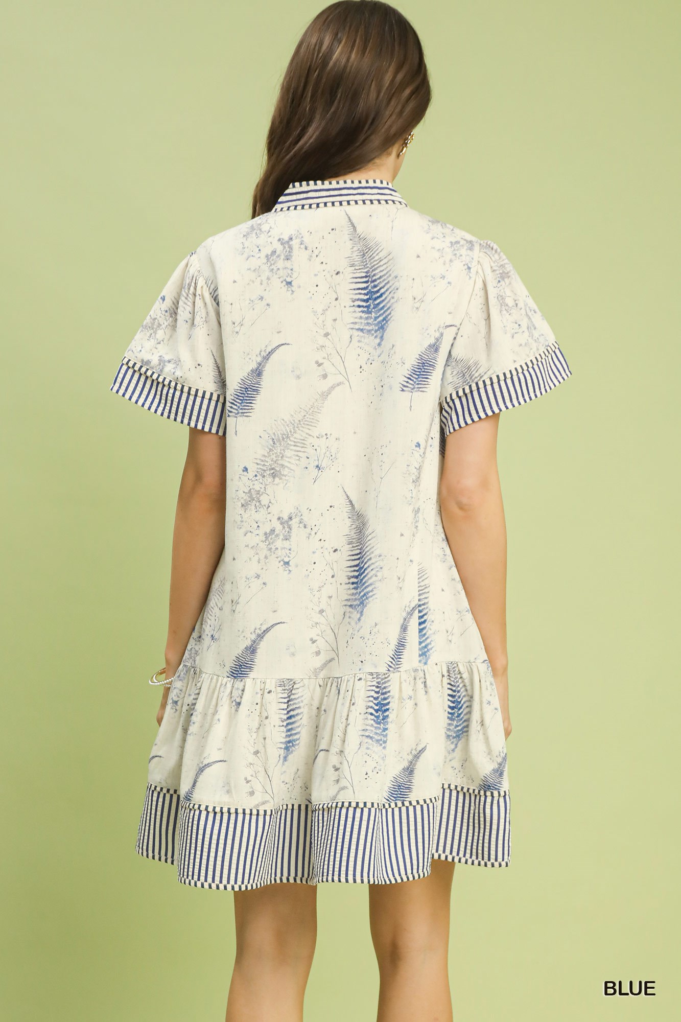 This linen printed button-front tiered mini dress is perfect for a boho-chic look. Featuring an allover botanical-inspired print and a split V-neck with button-front detail, it exudes a laid-back yet stylish vibe. The inclusion of side pockets adds functionality to this charming dress, while the tiered skirt creates a flattering silhouette. Lined for added comfort, this dress is a versatile and trendy addition to any wardrobe.