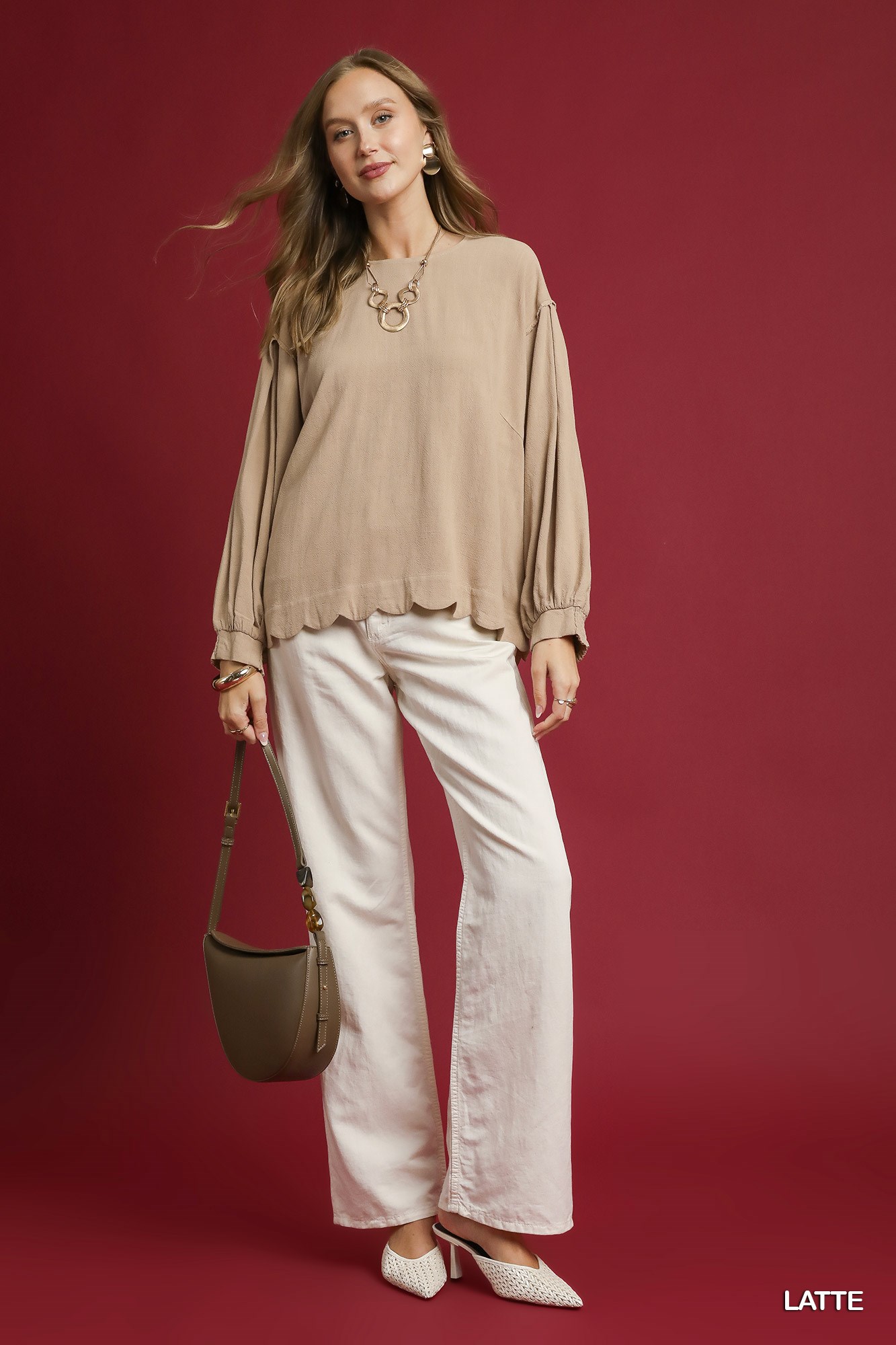 Umgee Linen Scallop Hem Long Sleeve Blouse