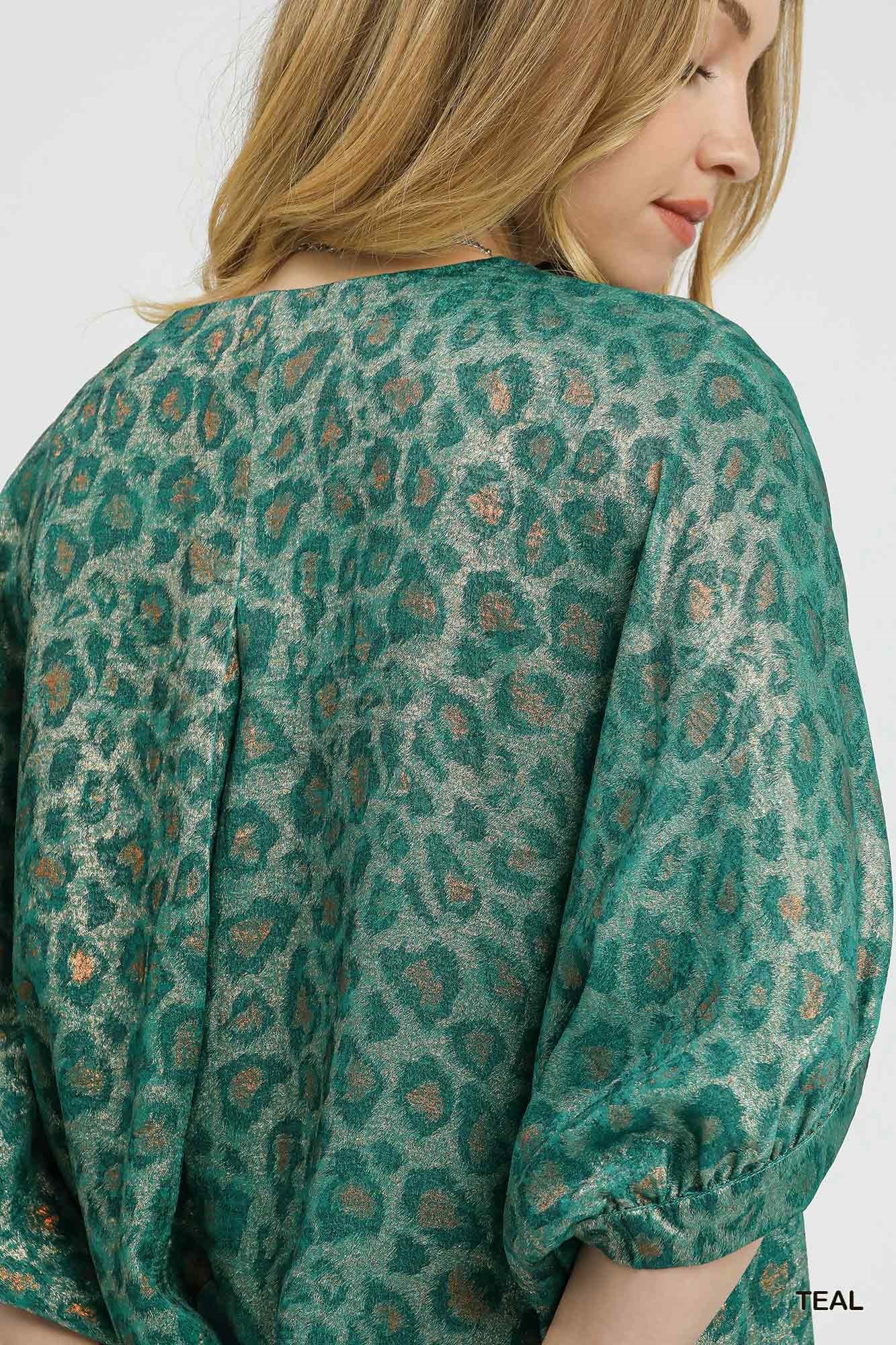Umgee Metallic Leopard Print V-Neck Kimono Dress