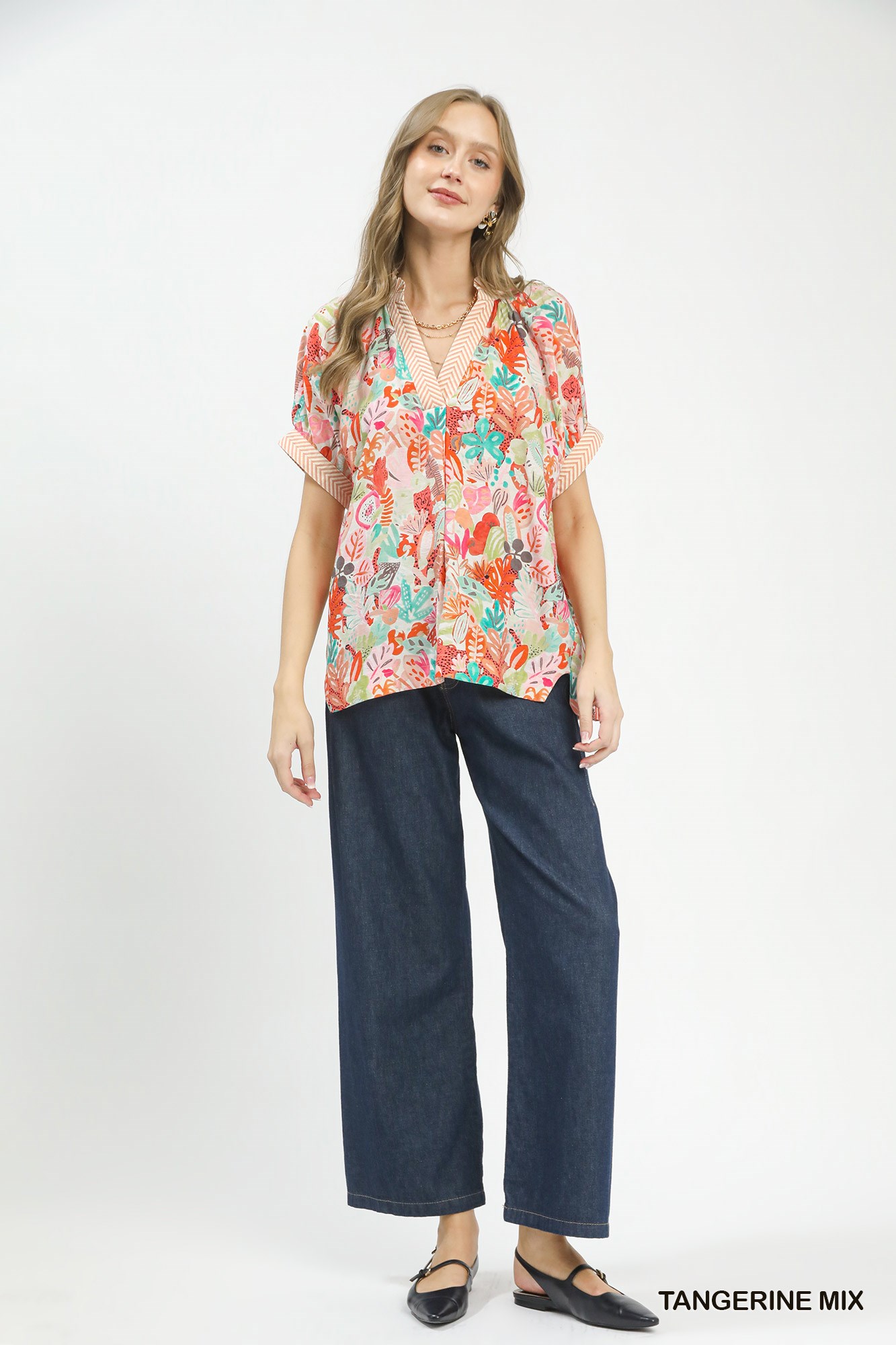 The Mix Boho Printed V-Neck Top is a stylish and versatile piece for your wardrobe. Featuring a flattering V-neck design, this top is perfect for both casual and dressy occasions. The bohemian-inspired print adds a touch of flair and personality to your outfit. Pair it with jeans for a relaxed daytime look, or dress it up with a skirt for a night out. This top is sure to become a new favorite in your collection.