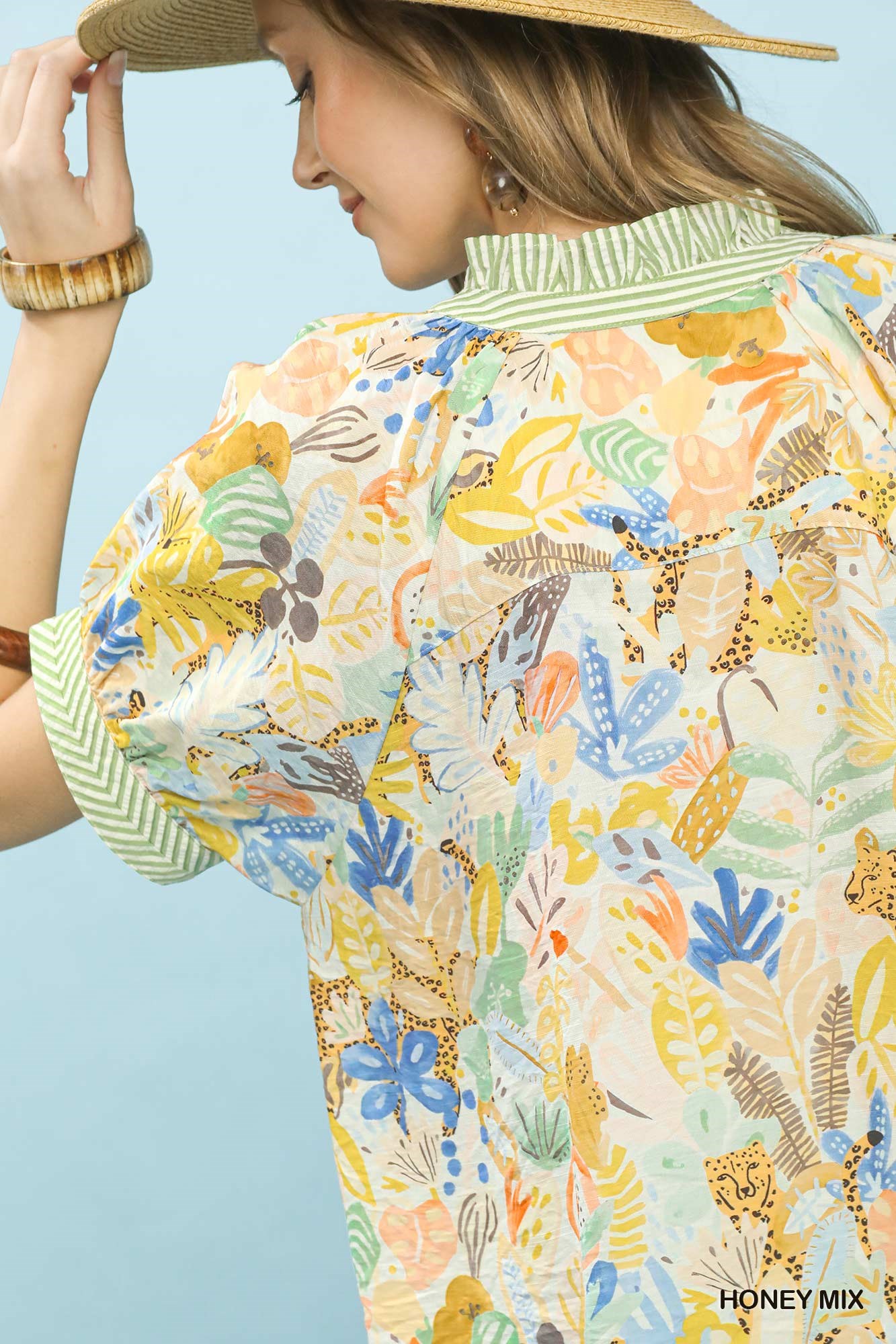 Umgee Mix Boho Printed V-Neck Top