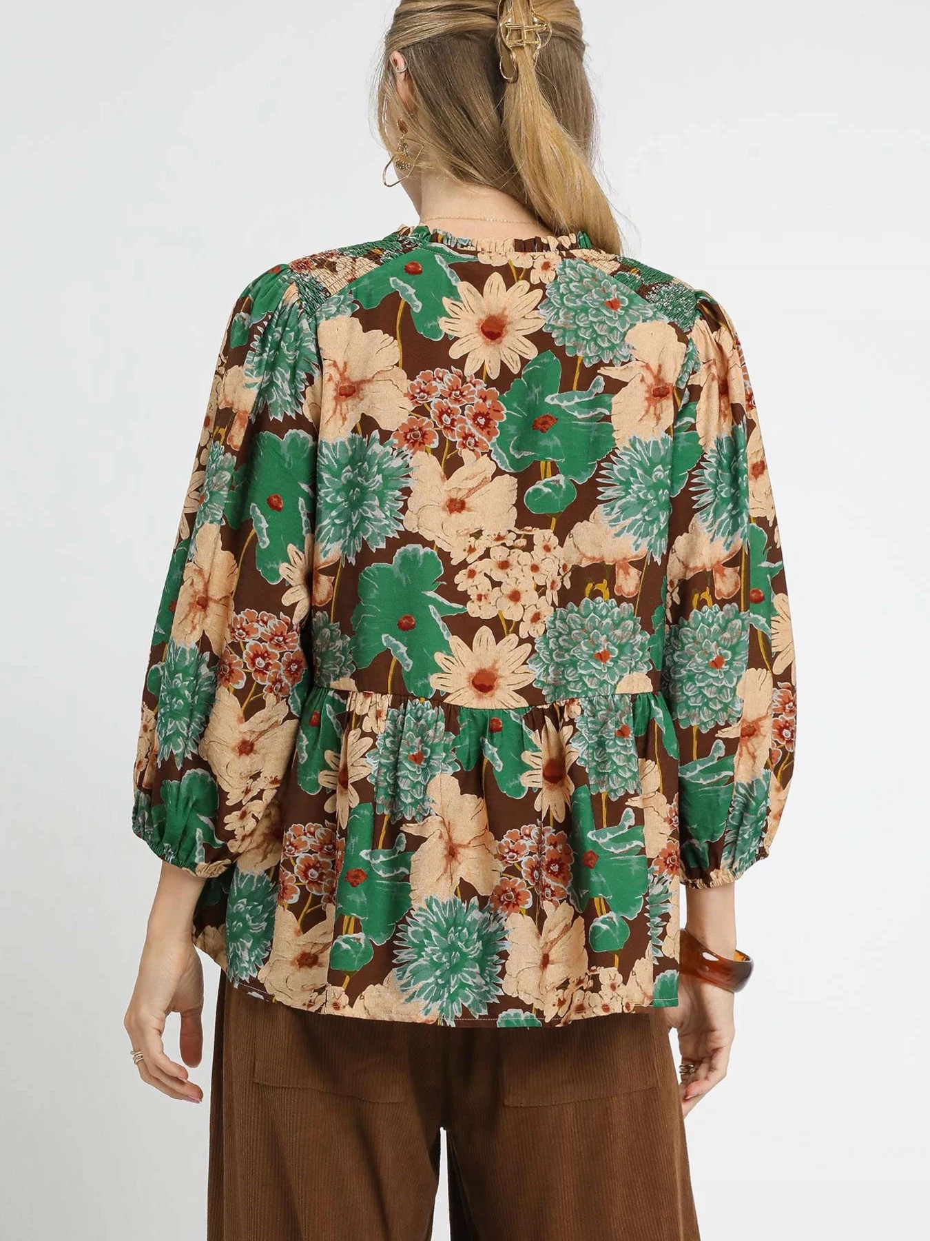 The Mix Floral Peplum Blouse with Tie Neck is a charming and feminine addition to your wardrobe. The mix floral pattern adds a playful and colorful touch to the blouse. Featuring a flattering peplum silhouette, it accentuates the waist for a flattering fit. The tie neck detail adds a sophisticated and elegant touch to the top. Elevate your ensemble with this stylish and versatile Mix Floral Peplum Blouse with Tie Neck today!