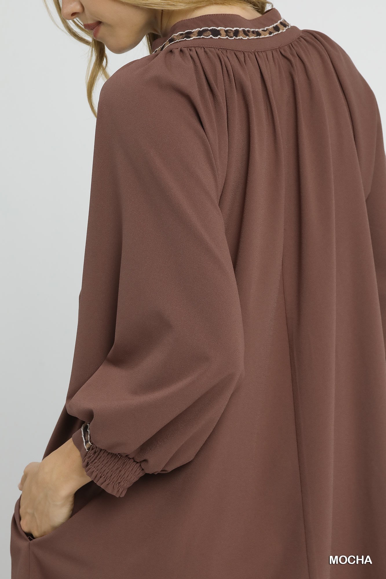 This notched shift dress with trim detail exudes sophistication and elegance. The unique notched design adds a modern twist to the classic shift silhouette, while the trim detail enhances its chic aesthetic. Perfect for a day at the office or a special occasion, this dress is a versatile and stylish choice. Elevate your look with this sophisticated dress that effortlessly combines style and comfort.