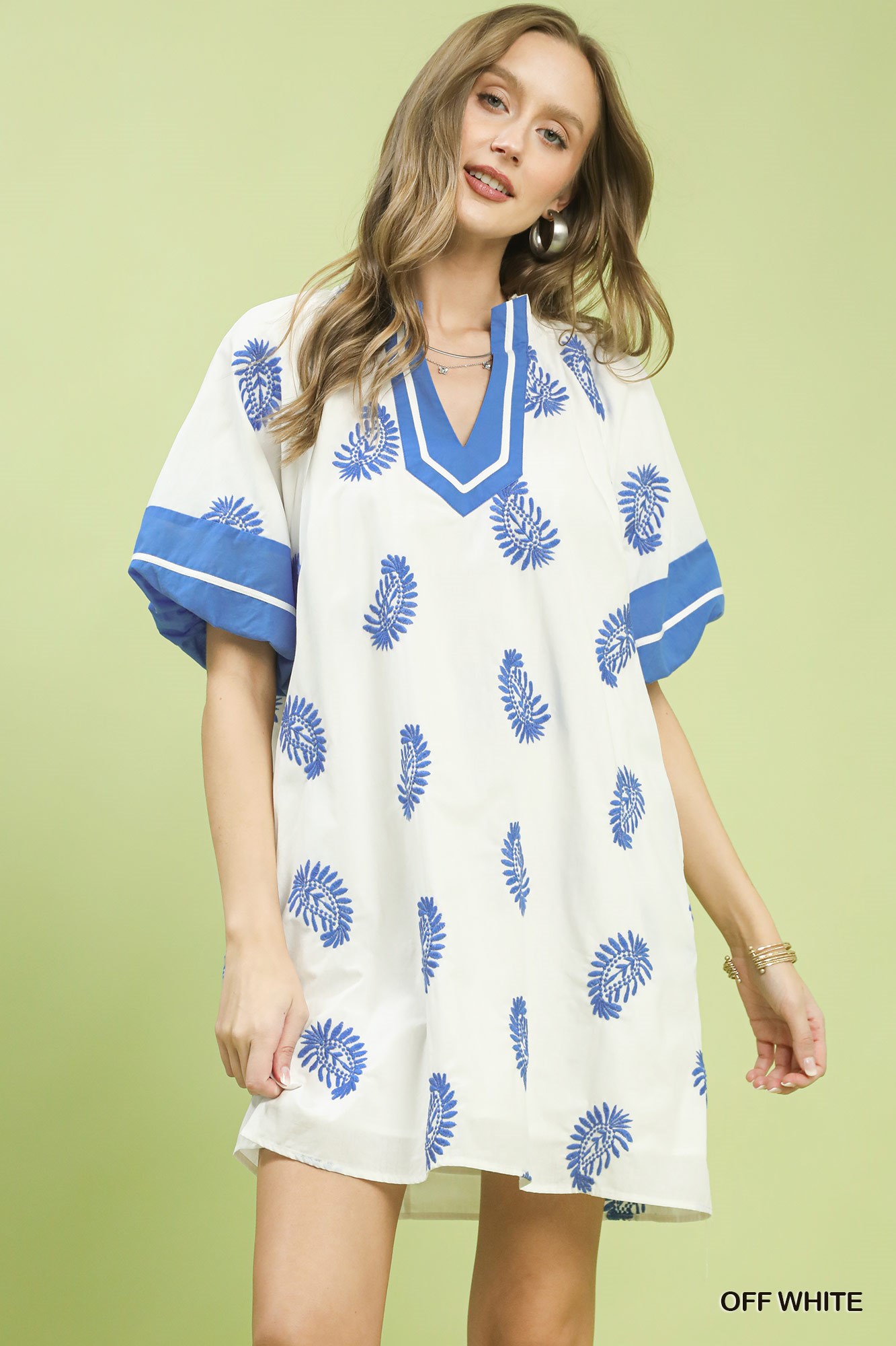Make a statement in this paisley embroidered boho mini dress. The intricate paisley embroidery adds a touch of elegance and sophistication to the dress. The bohemian style exudes a free-spirited and trendy vibe. Perfect for summer events, festivals, or casual outings. Elevate your wardrobe with this stylish and eye-catching mini dress.