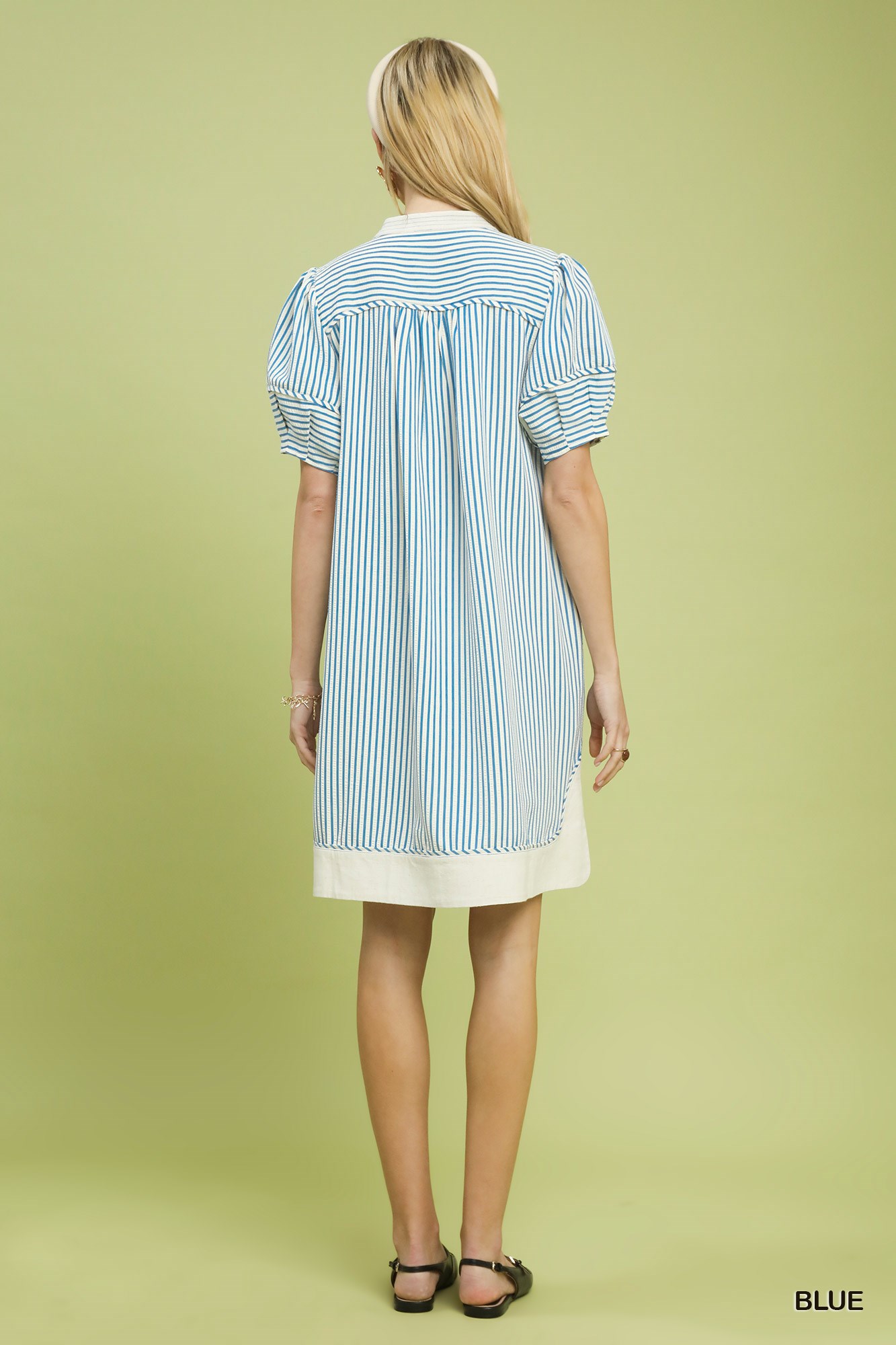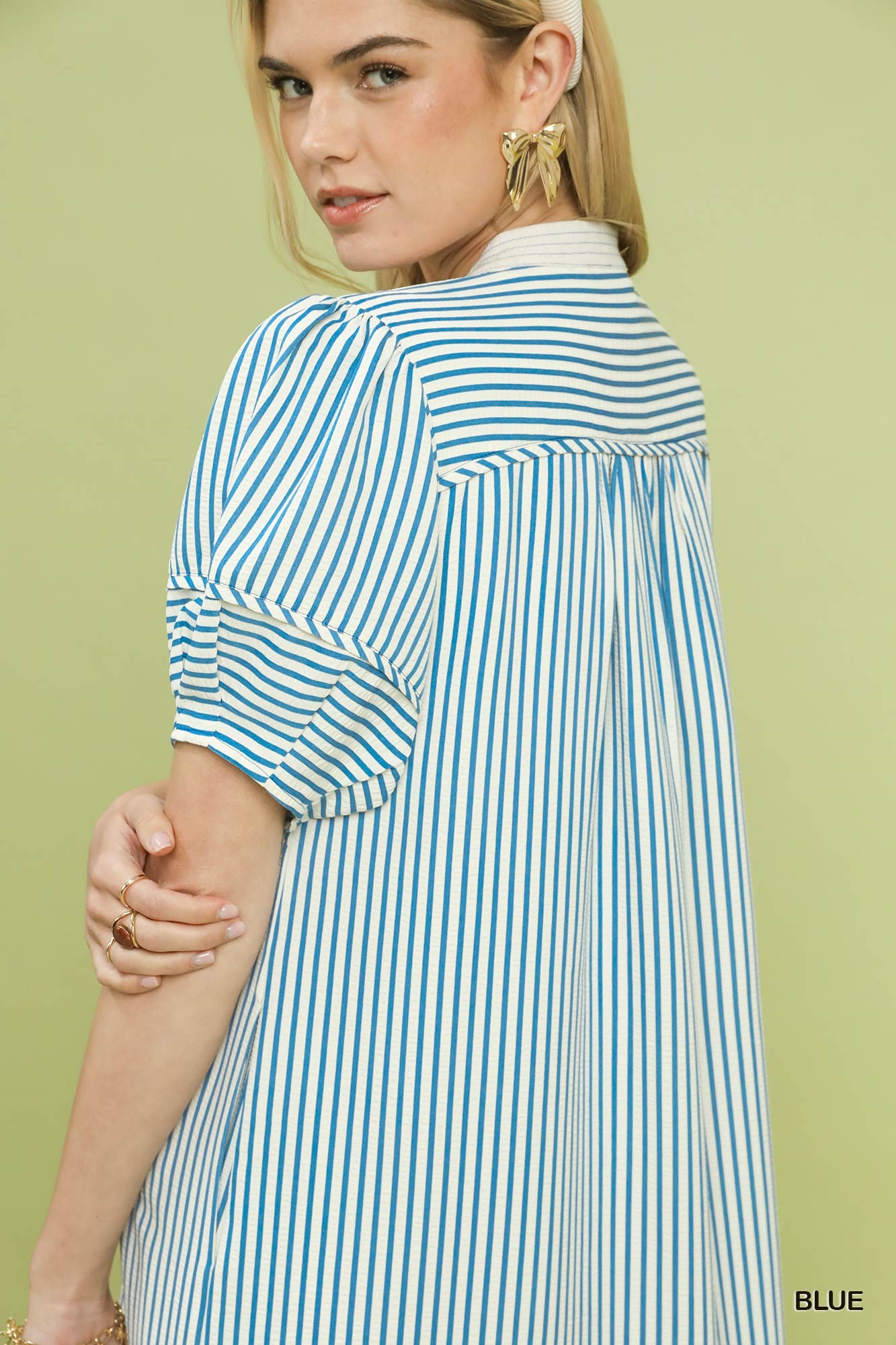 Umgee Pinstripe Shift Dress with Contrast Trim