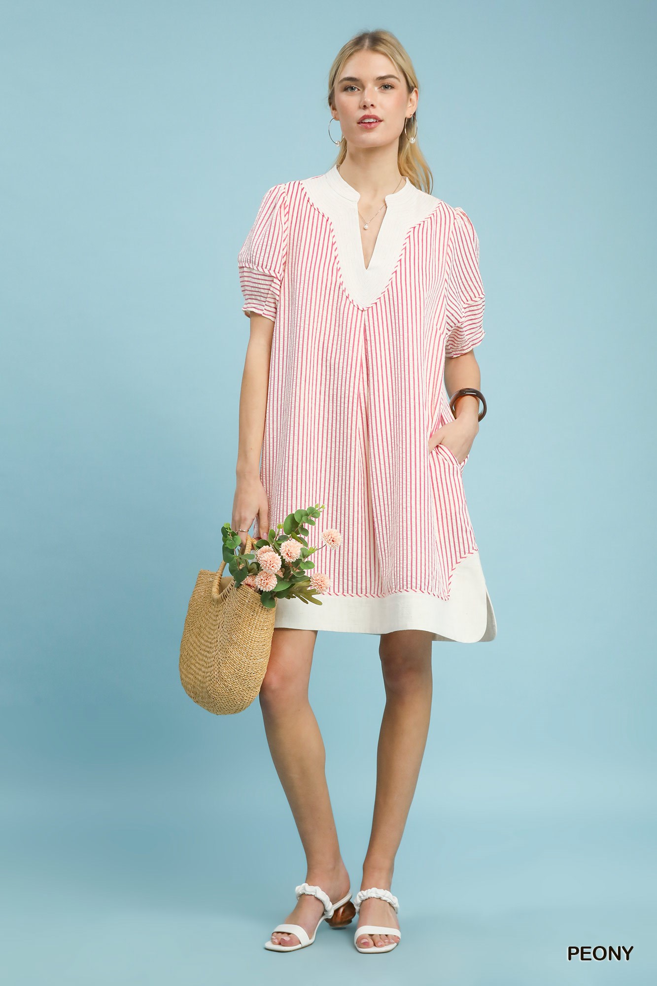 Umgee Pinstripe Shift Dress with Contrast Trim