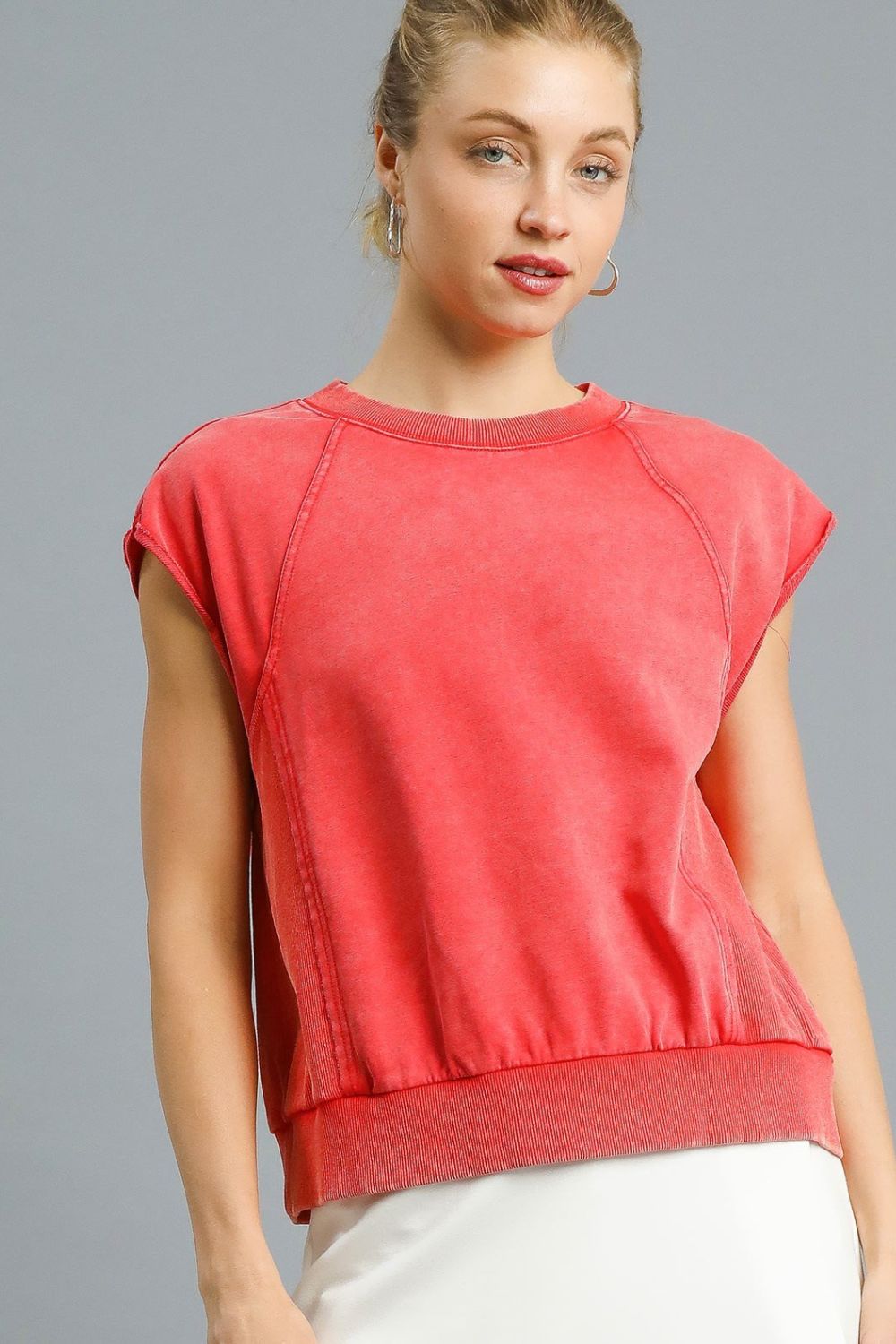 This stylish coral pink sleeveless sweatshirt features a modern raglan sleeve design with a comfortable relaxed fit. Crafted from soft cotton blend material, it offers breathable comfort perfect for casual wear. The vibrant coral color adds a fresh pop to any wardrobe, while the crew neckline and ribbed hem provide classic sweatshirt styling. Ideal for layering or wearing alone, this versatile piece combines comfort with contemporary fashion appeal.